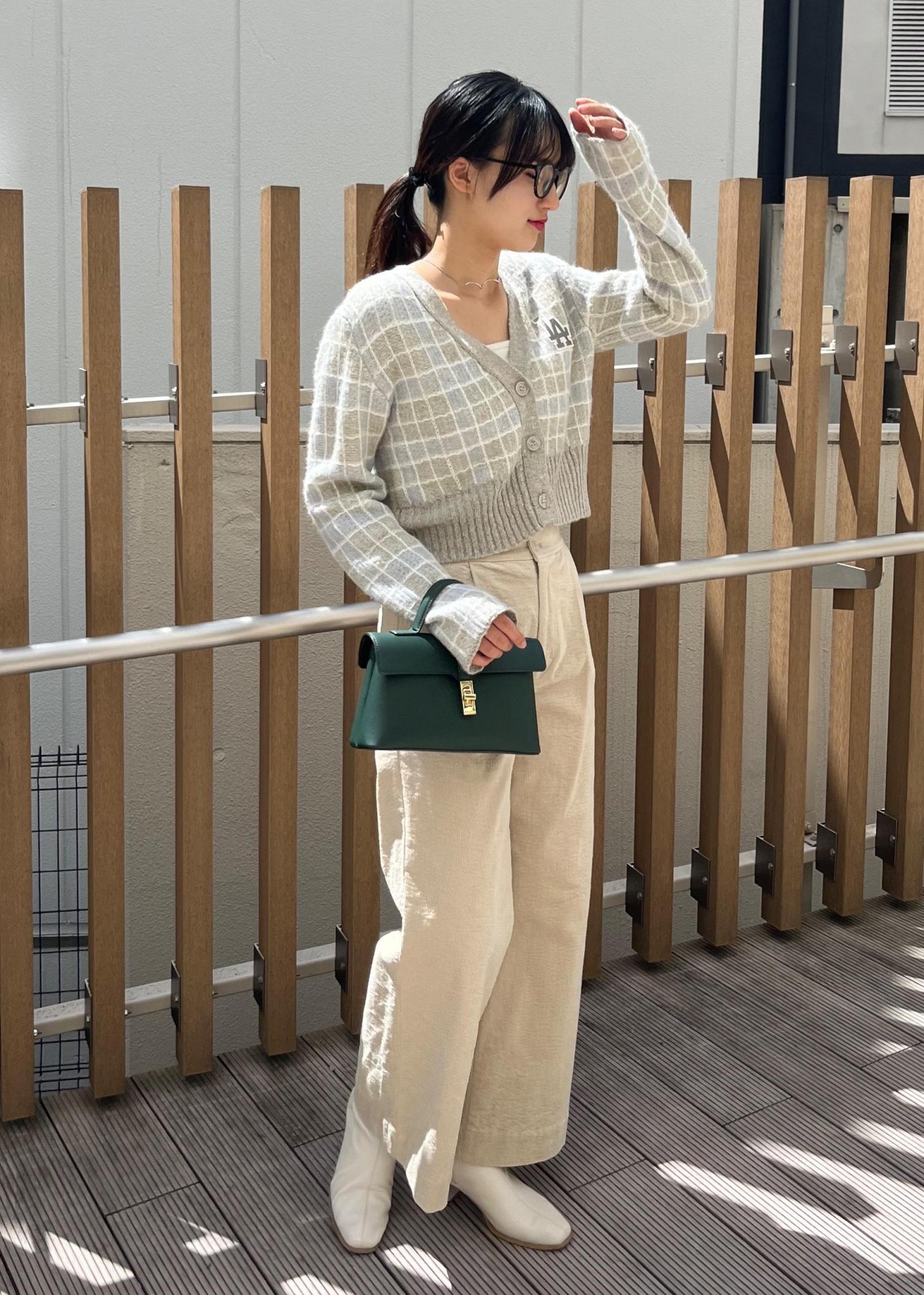アウトレットVIS【MLB COLLECTION BY JUN】短丈チェックジャガードカーディガンライトグレー / F¥3,300レビュー色味がとても可愛いカーディガンです!!