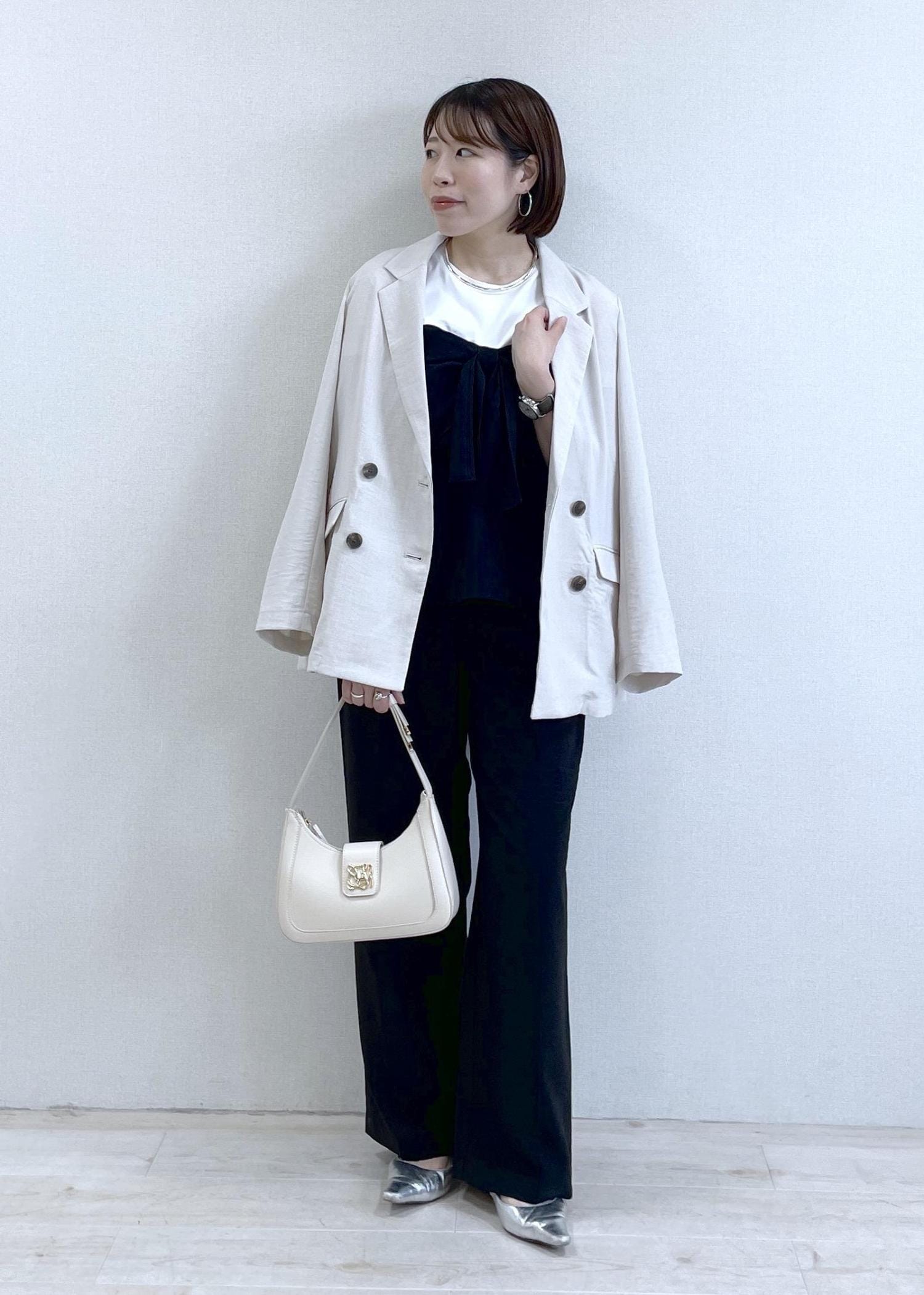 162cmでMサイズを着用しており、足首がしっかり見える長さです。マーメイドシルエットですが、太もも辺りはピッタリしすぎないのでラインを気にせず着れました。 -