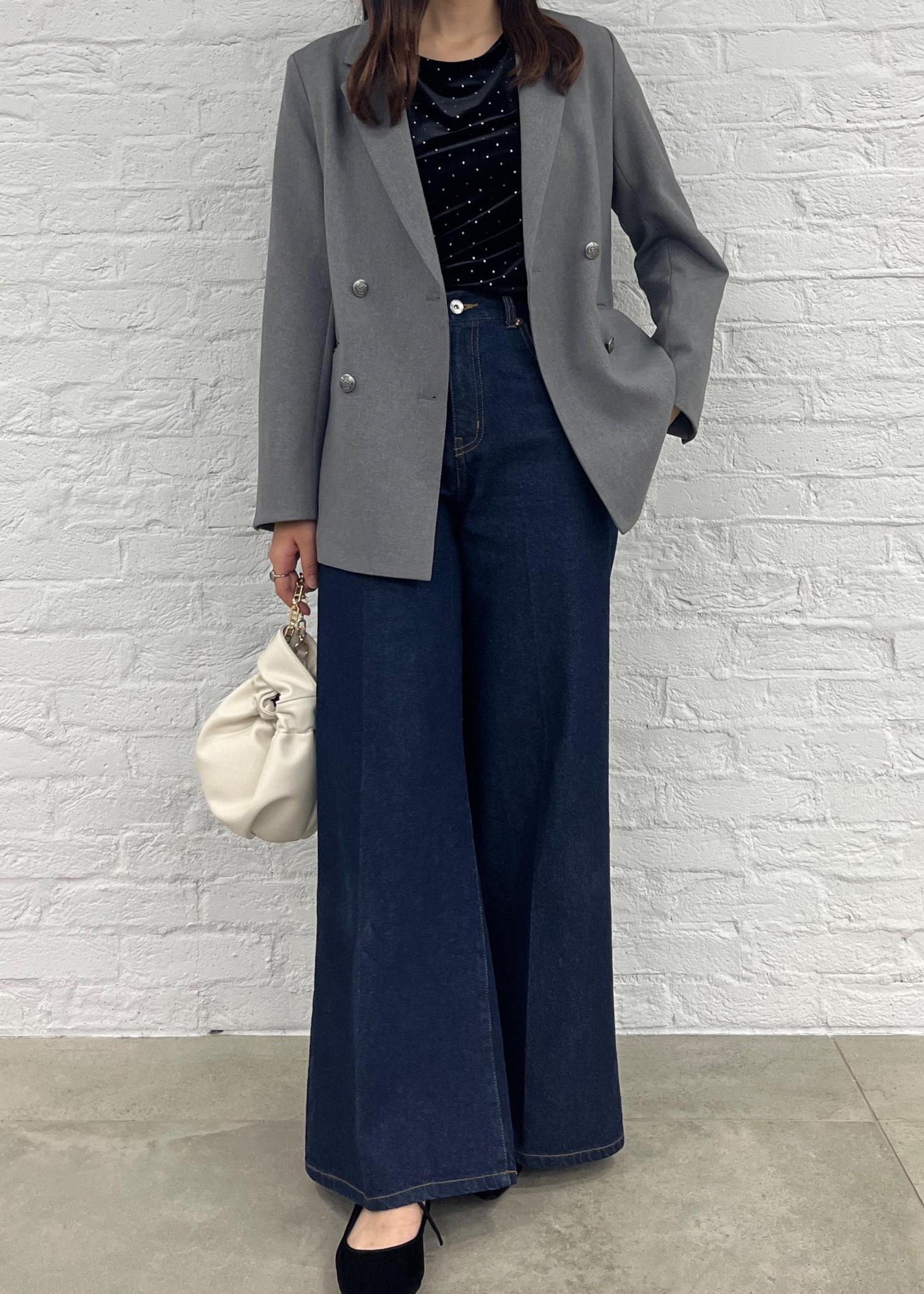 肩幅広め、いかり肩ですが、肩パッド入っていないのでオーバーになりすぎず、コンパクトに見え◎