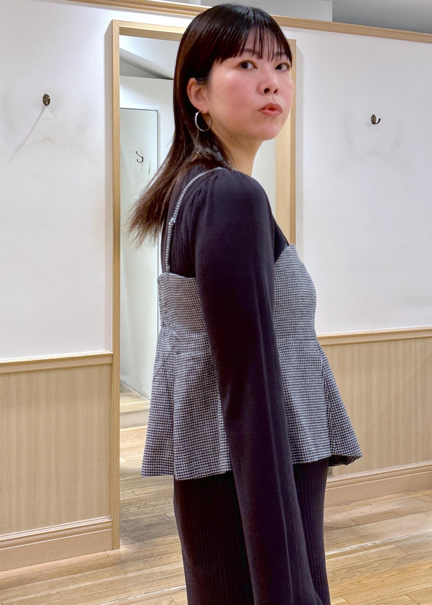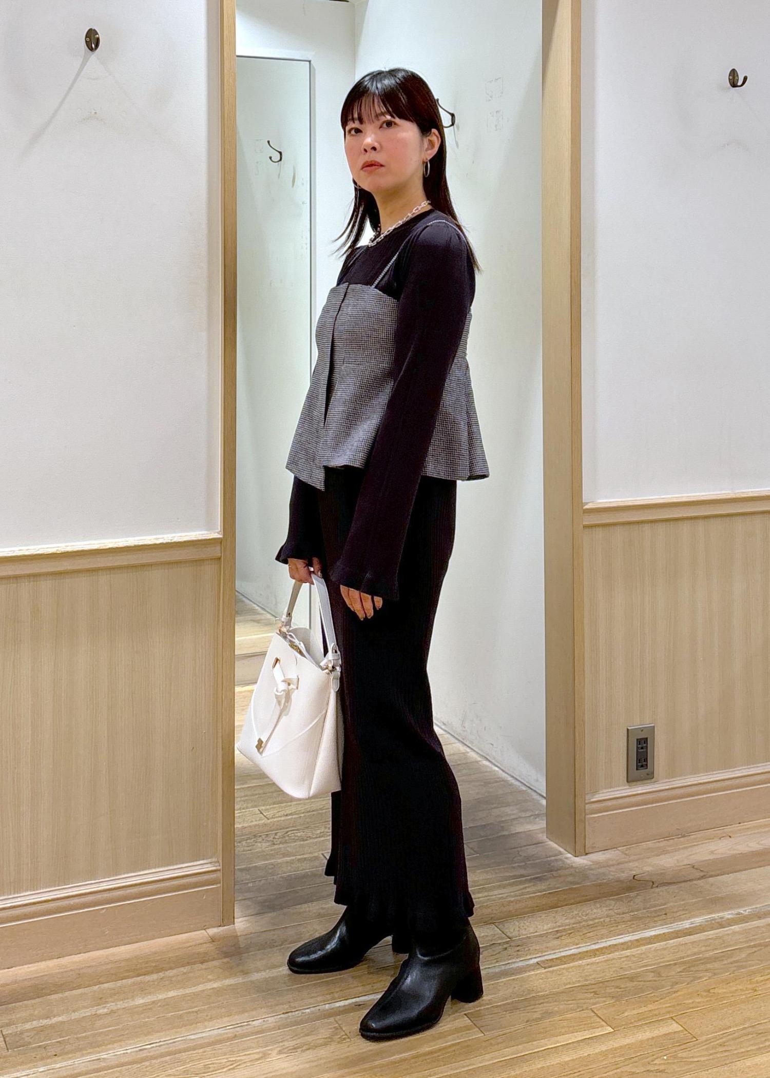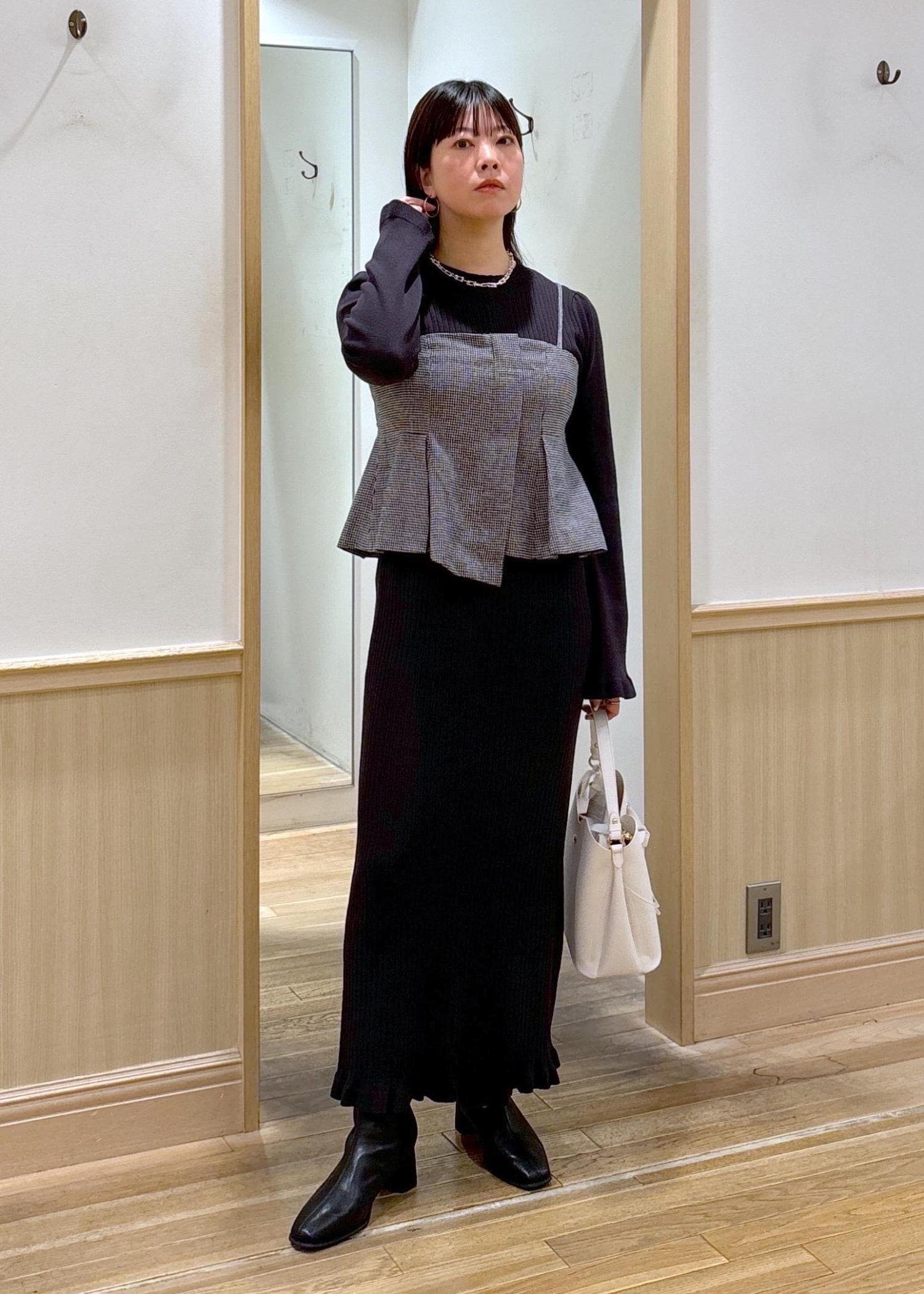 ワンピースはリブニット素材なので柔らかく着心地も抜群です