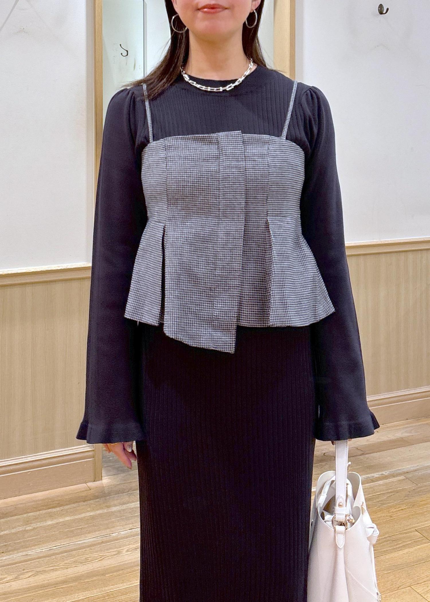 アウトレットVIS【SET】ビスチェセット裾ミニフリルリブニットワンピースブラック系 / F¥5,999レビュービスチェとセットになったワンピースです