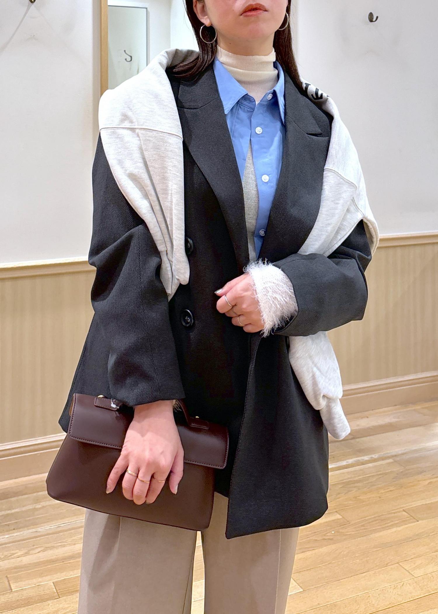 シャツ、ジャケット、スウェットと私の好きなものを詰め込みつつ、ちょっとトラッドで知的な印象のレイヤードスタイリングにしました◎