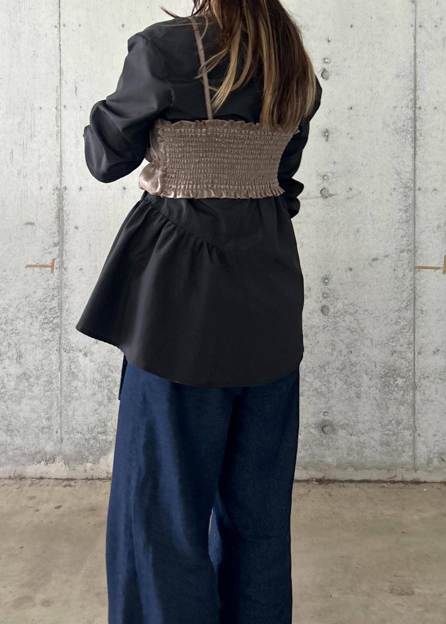 VISアシンメトリーフレアーシャツブラック / F¥5,336レビュー157cmでお尻にかかる着丈です。