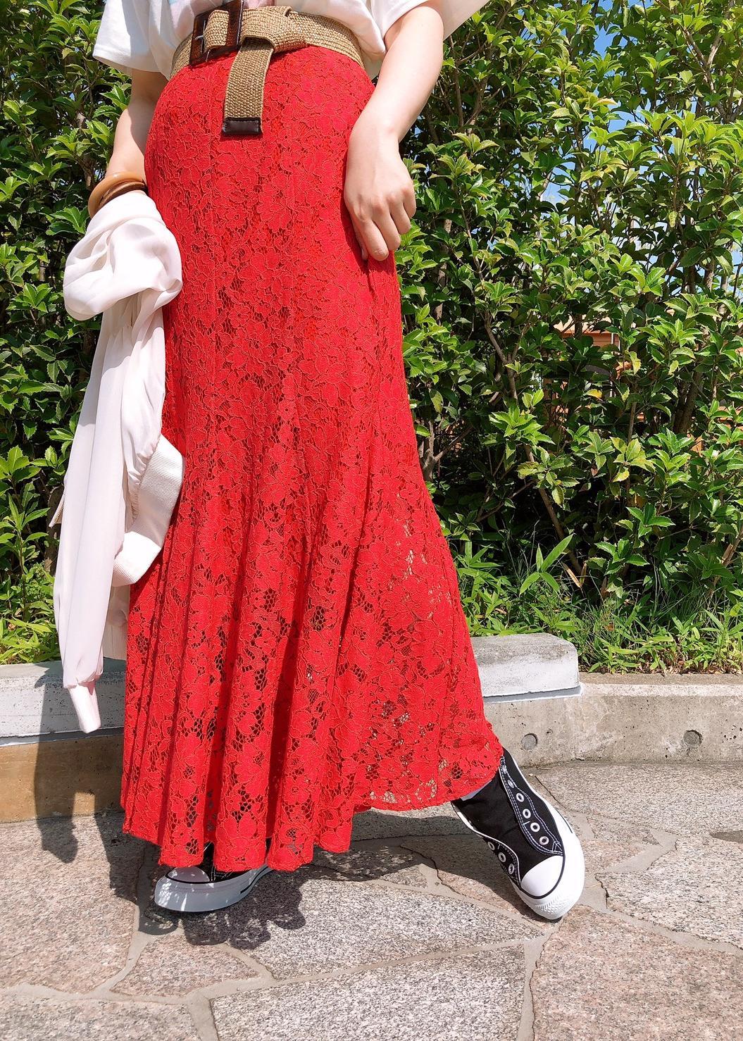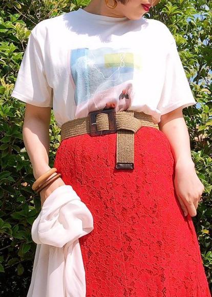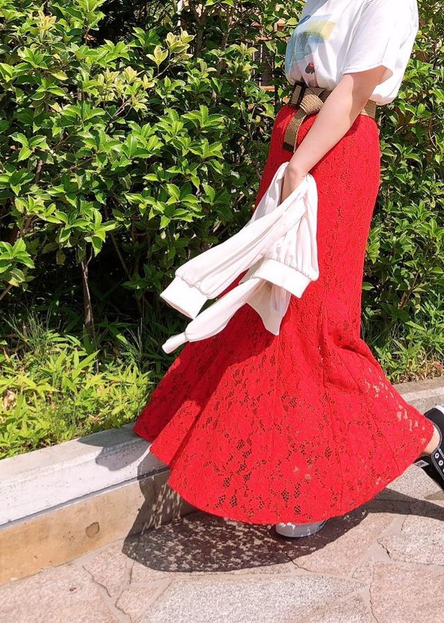 POPなプリントTシャツに総レースのエレガントなスカートを合わせカジュアルに着こなしました。着丈がロング丈なので足元もスニーカーやサンダルでも合わせやすいです。 公式ONLINE J'aDoReでは、MAX70%OFFの夏セールを開催中!!この機会をお見逃しなく♪
