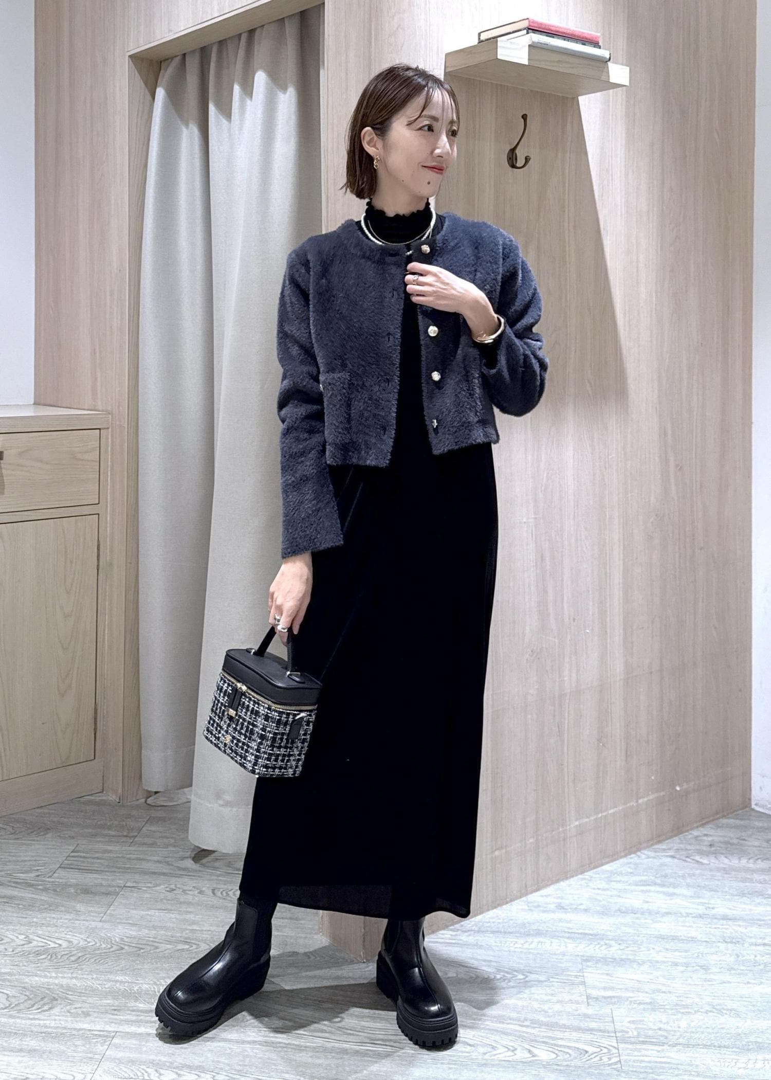 カーディガンを羽織れば少しカジュアルダウンするのでお出かけにもオススメです♪