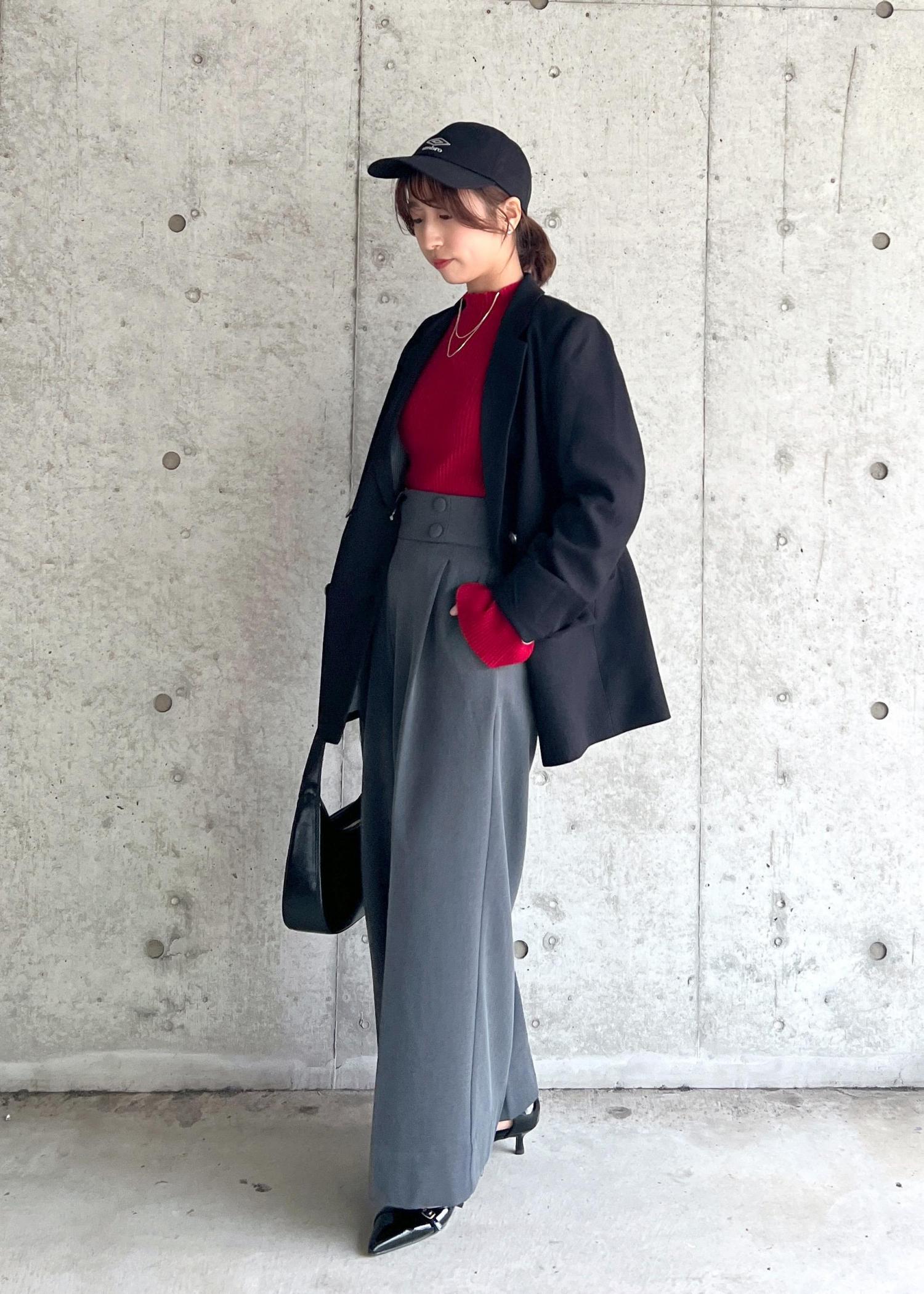ワイドパンツはウエストがしっかり細見えするので、ボリュームのあるニットと合わせてXラインを作るのもおすすめ☺︎