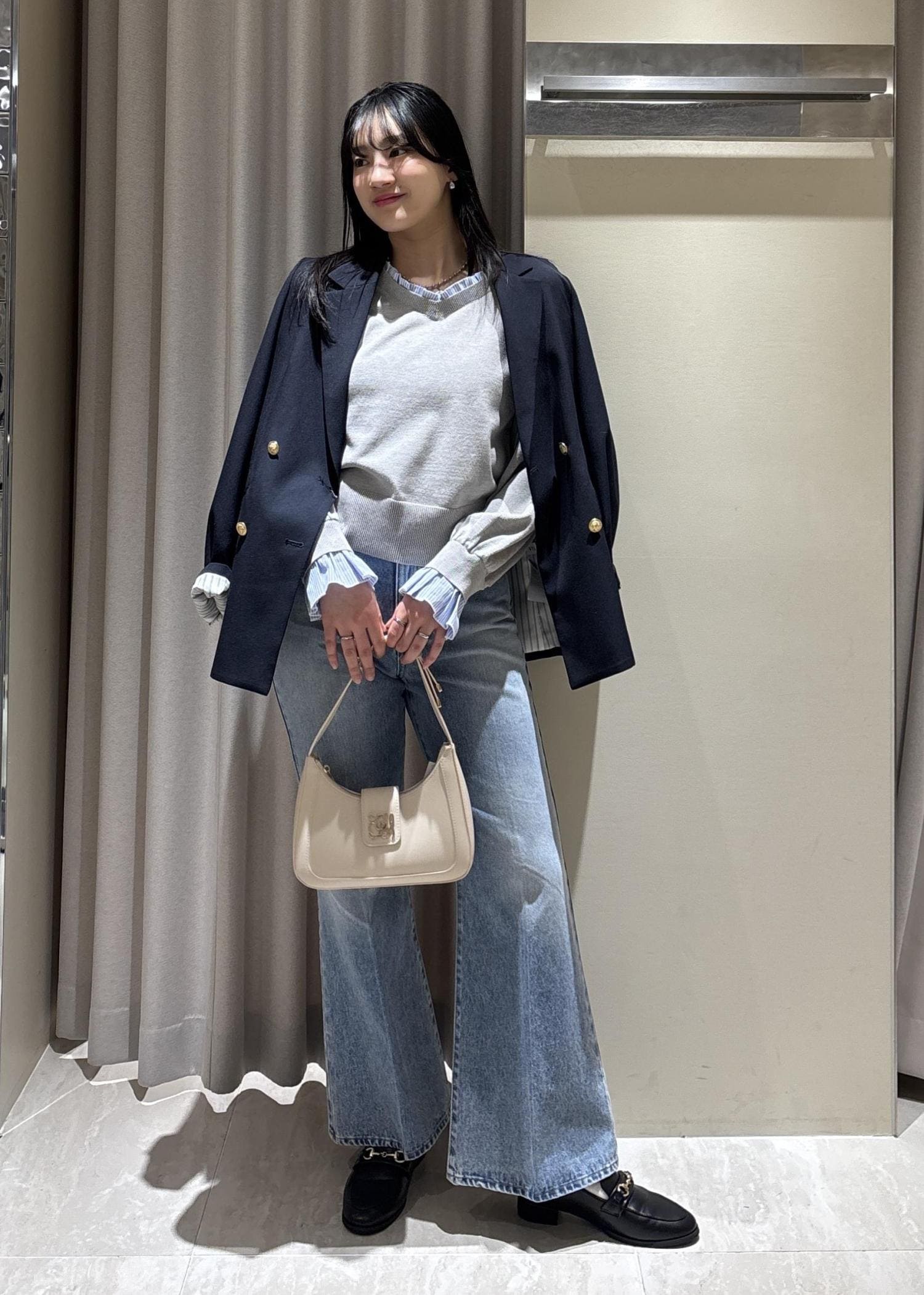 ロングブーツなどで合わせるのさがおすすめです。 -