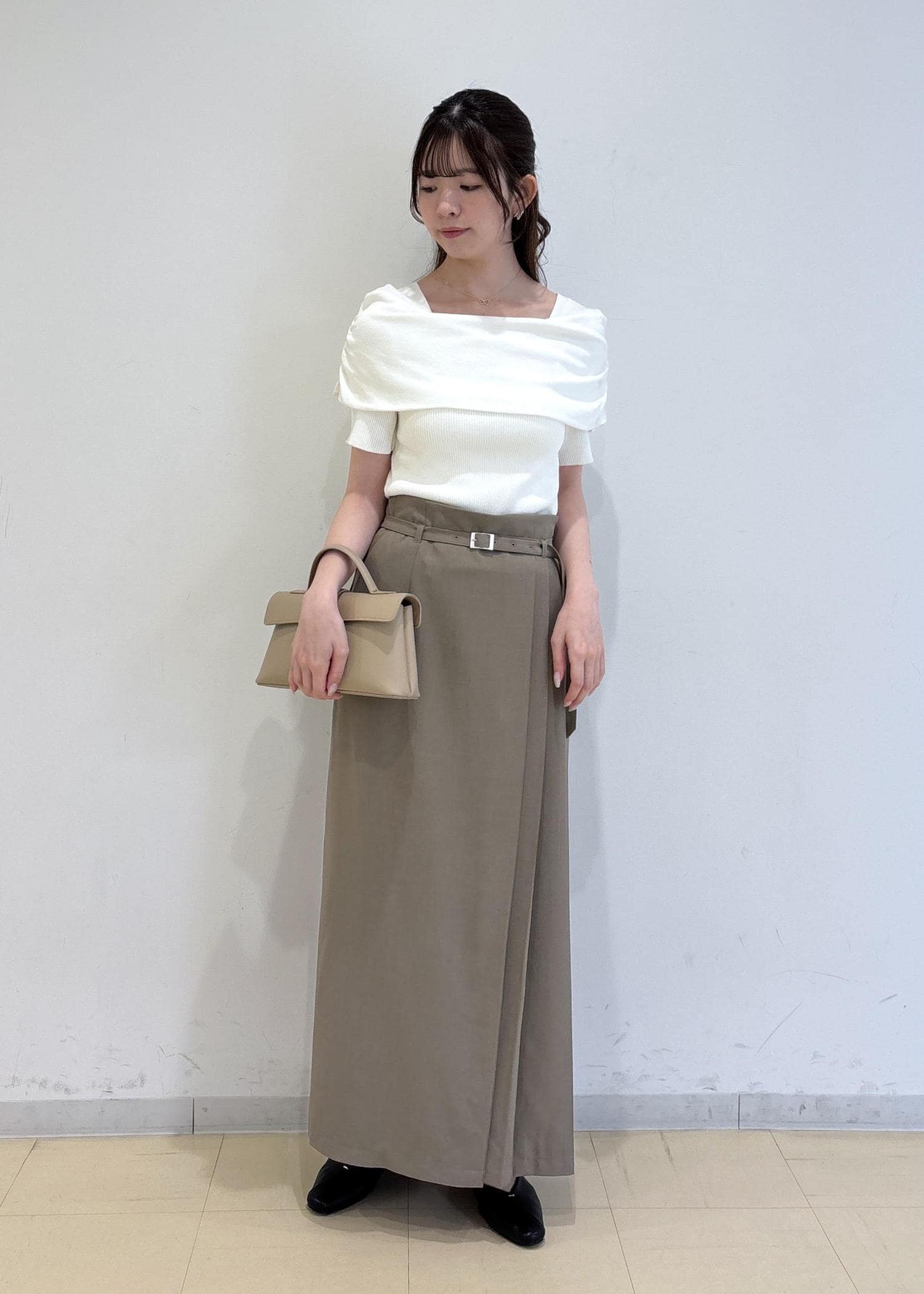 全体をワントーンでまとめた、大人レディコーデです。