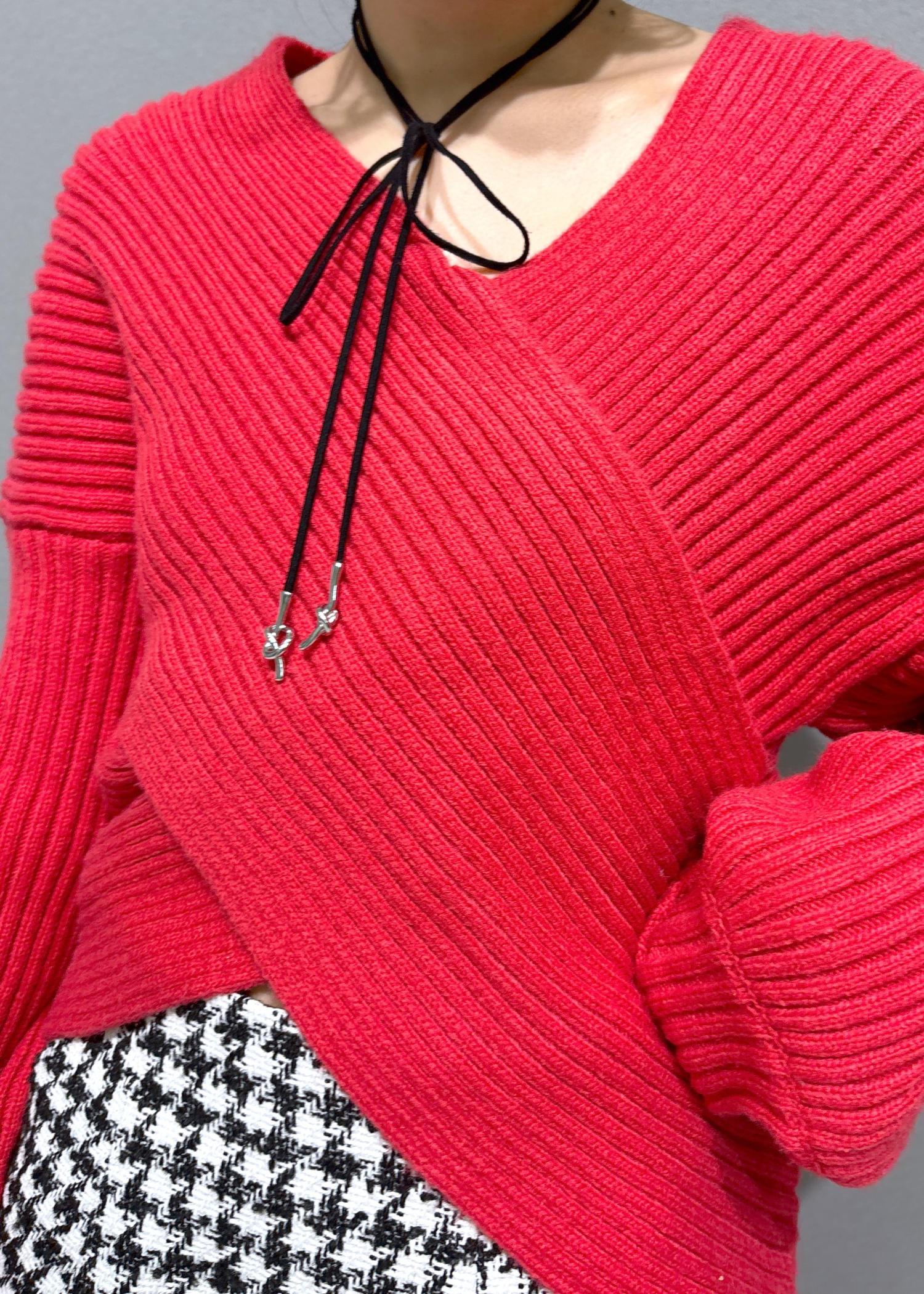 アウトレットVISふんわりカシュクールニットプルオーバーレッド / F¥3,295レビューレイヤードでも単体でも大活躍のデザインニットです!