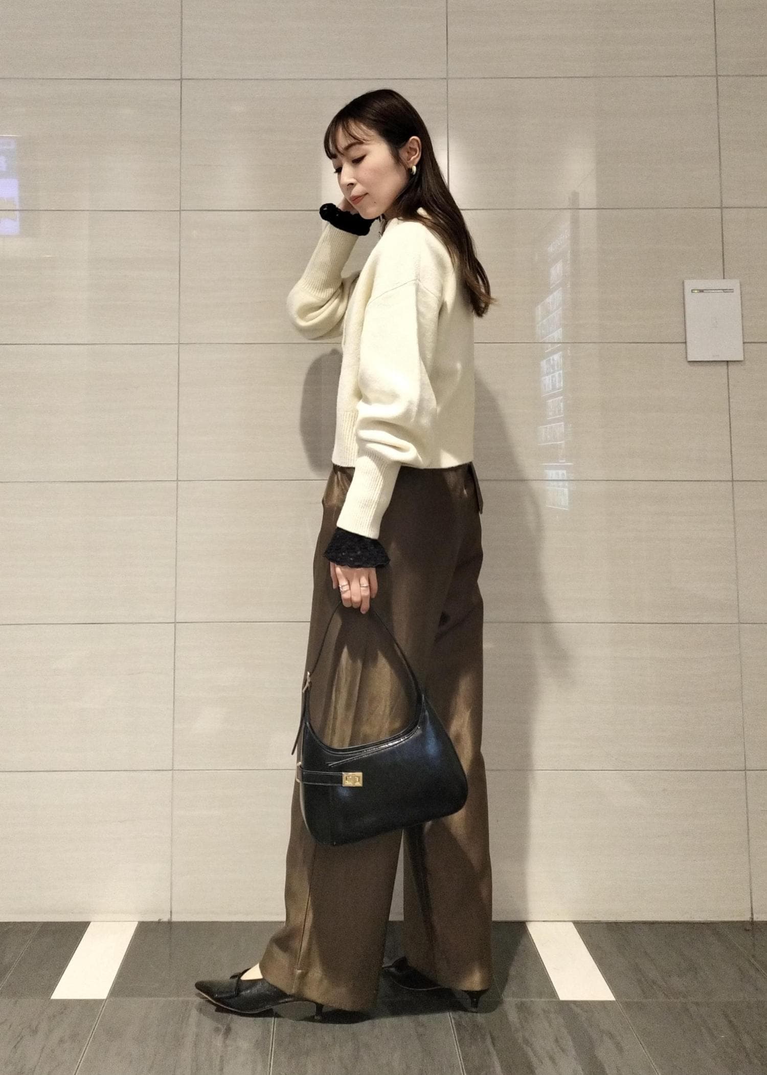 甘くみえすぎないポインテッドトゥとヒールがパンツスタイルにもマッチします。