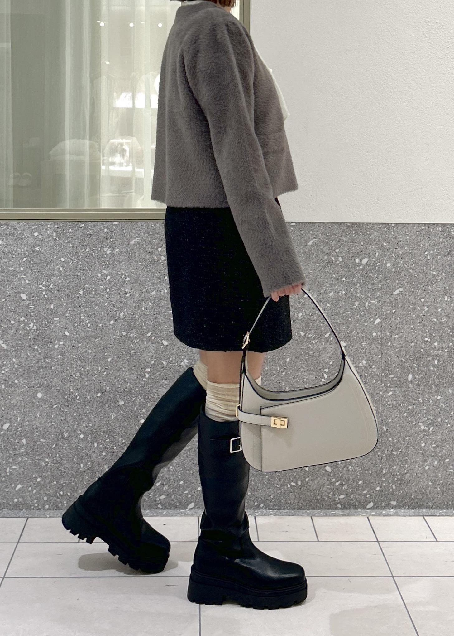 太ももはしっかり隠れますが、ミニ丈なのでロングブーツとの相性もいいです◎