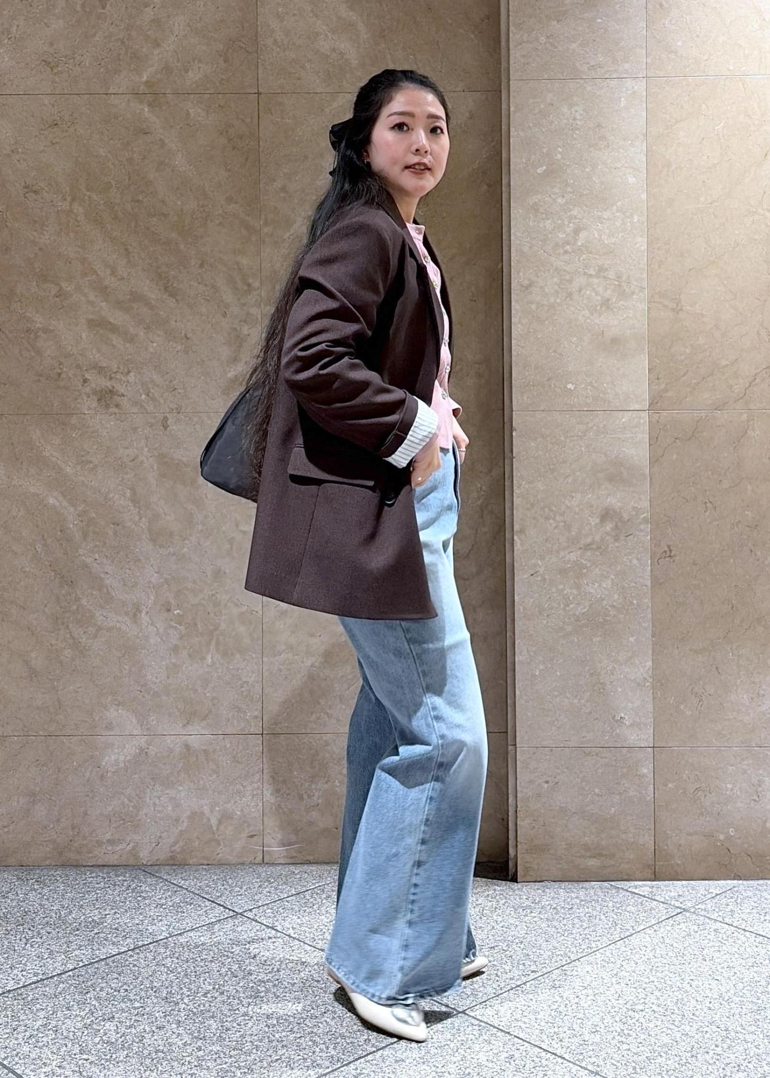 高身長にも嬉しい着丈で、スニーカーを履いた時にストンとまっすぐにストレートシルエットにならず、クッションがほんのり入ってくれるので、今っぽい雰囲気&高見えする印象でした。