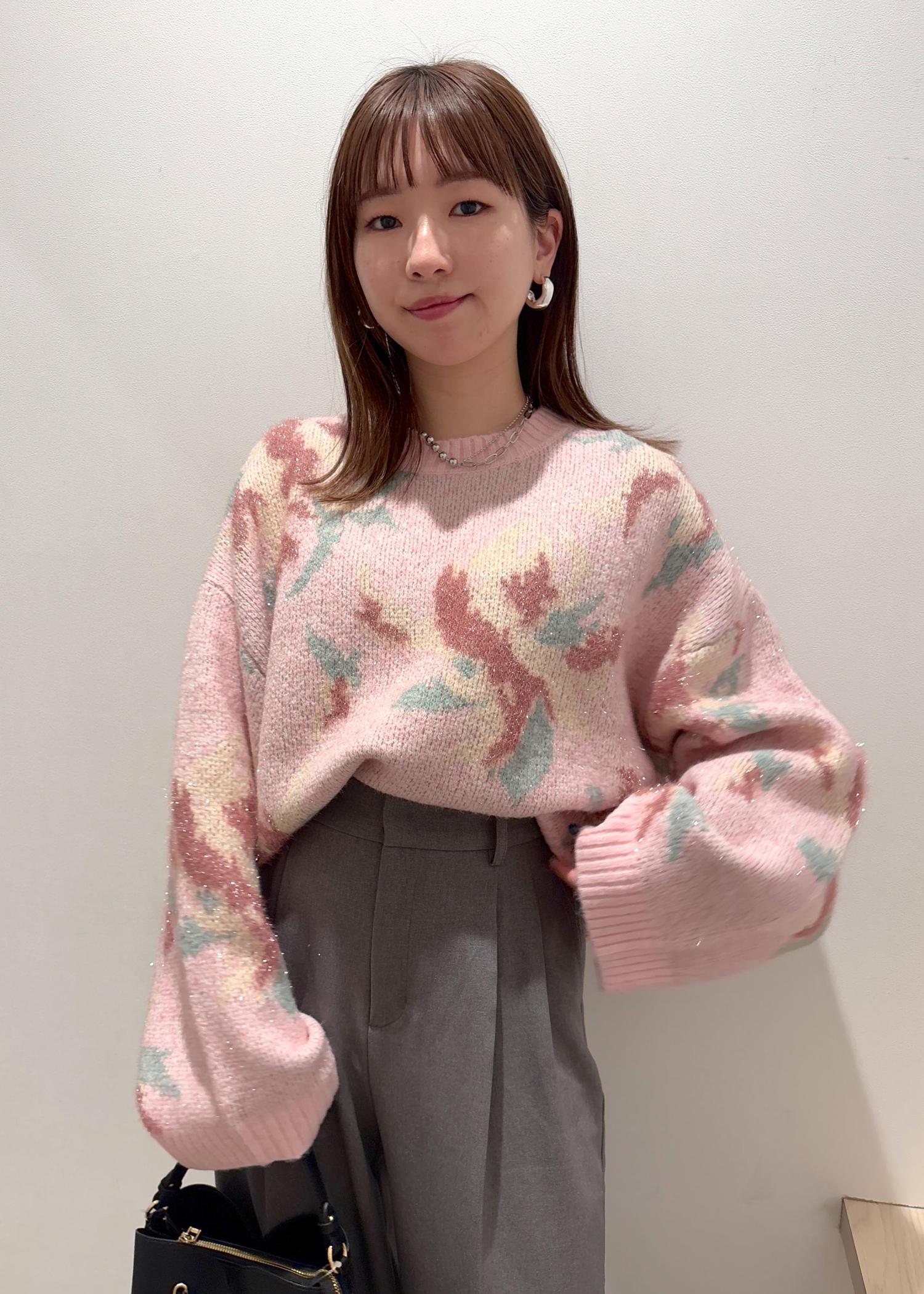 アウトレットVISフラワージャガードニットプルオーバーピンク / F¥2,636レビューざっくりとしたサイズ感で袖は大きく広いています◎