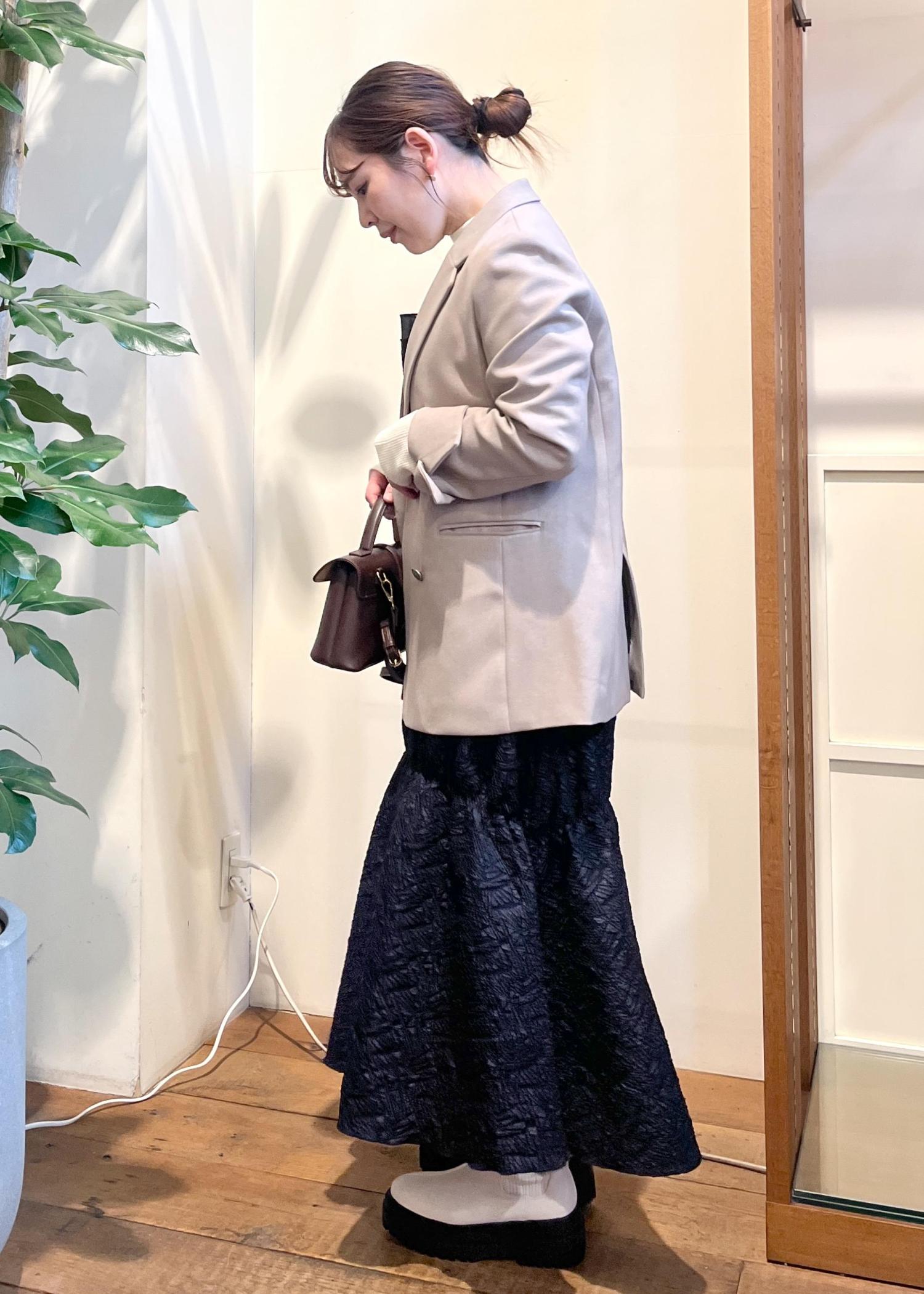 アウトレットVIS【洗える】ふくれジャガードシャーリングスカートネイビー / F¥3,076レビュー身長152センチでくるぶしが隠れる丈感。
