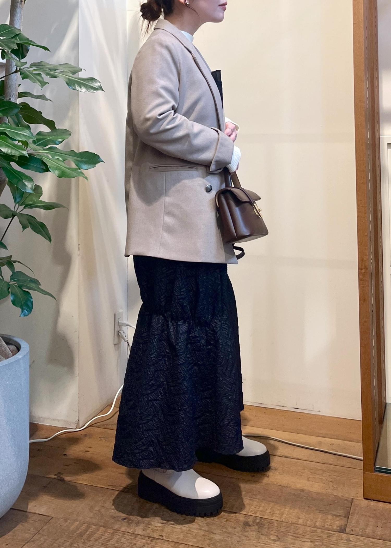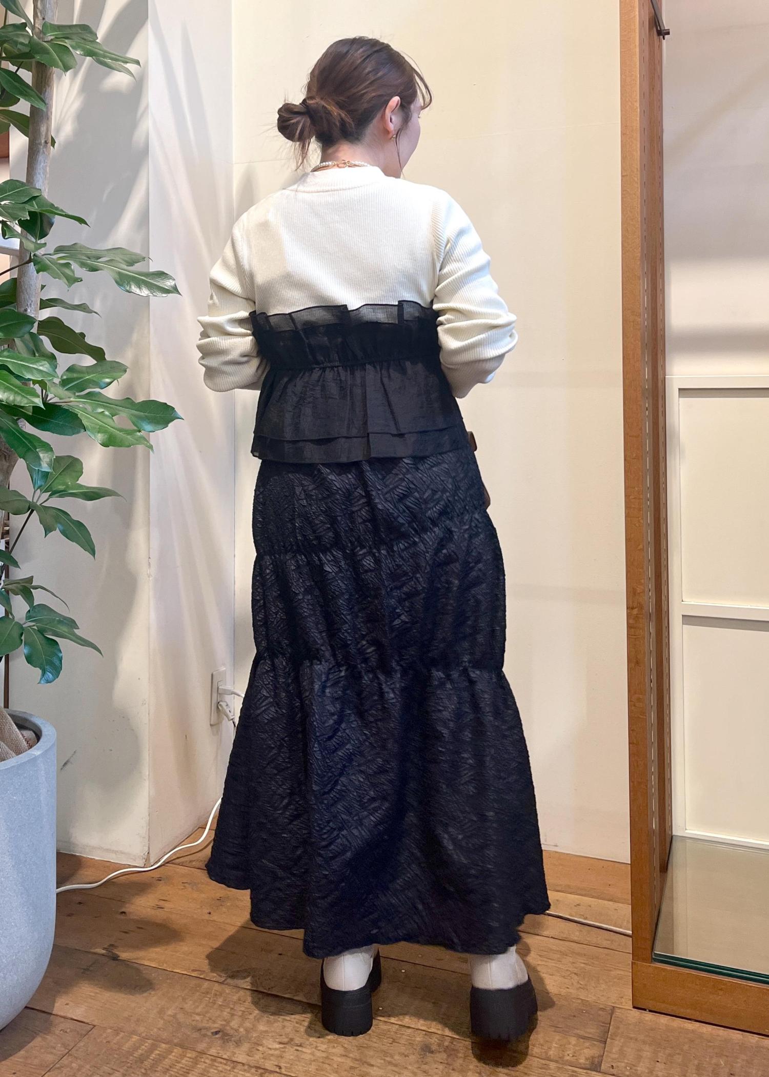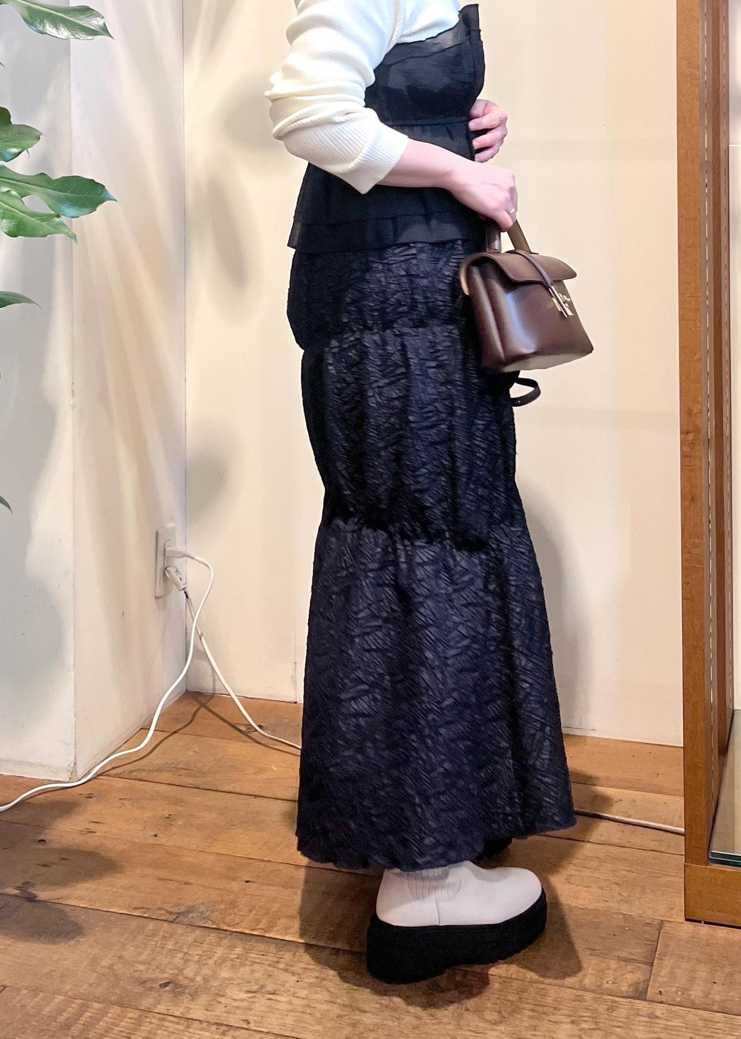 フレアスカートでもティアードが絞ってあるのでスッキリ見えします。 -