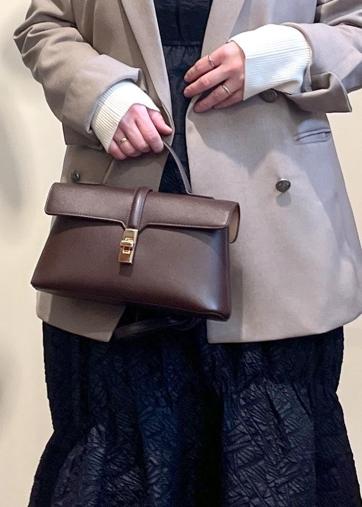 VIS【新色追加】ひねり金具ワンハンドルミニショルダーバッグダークブラウン / F¥5,489レビュー小さく見えて500ミリペットボトルも収納できる程のマチがあります!きれいめなデザインですが、小ぶりなので大げさにならず普段使いしやすいです。