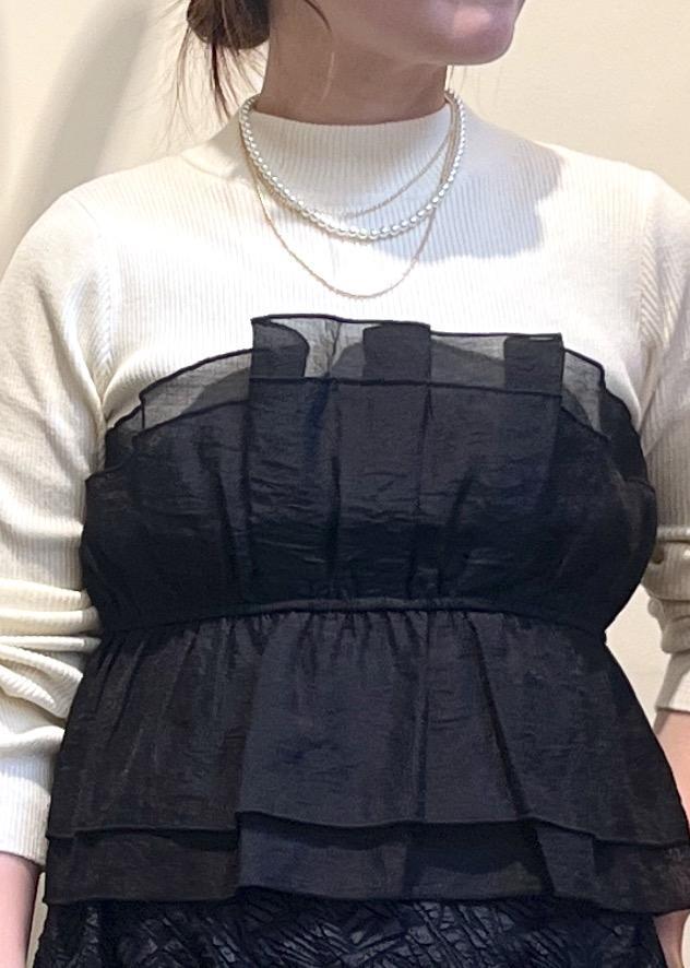VIS旬なレイヤードスタイルが叶う!ビスチェドッキングニット/洗えるキナリ系 / F¥4,940レビュー伸縮性が良く肉感を拾いづらいリブニット。