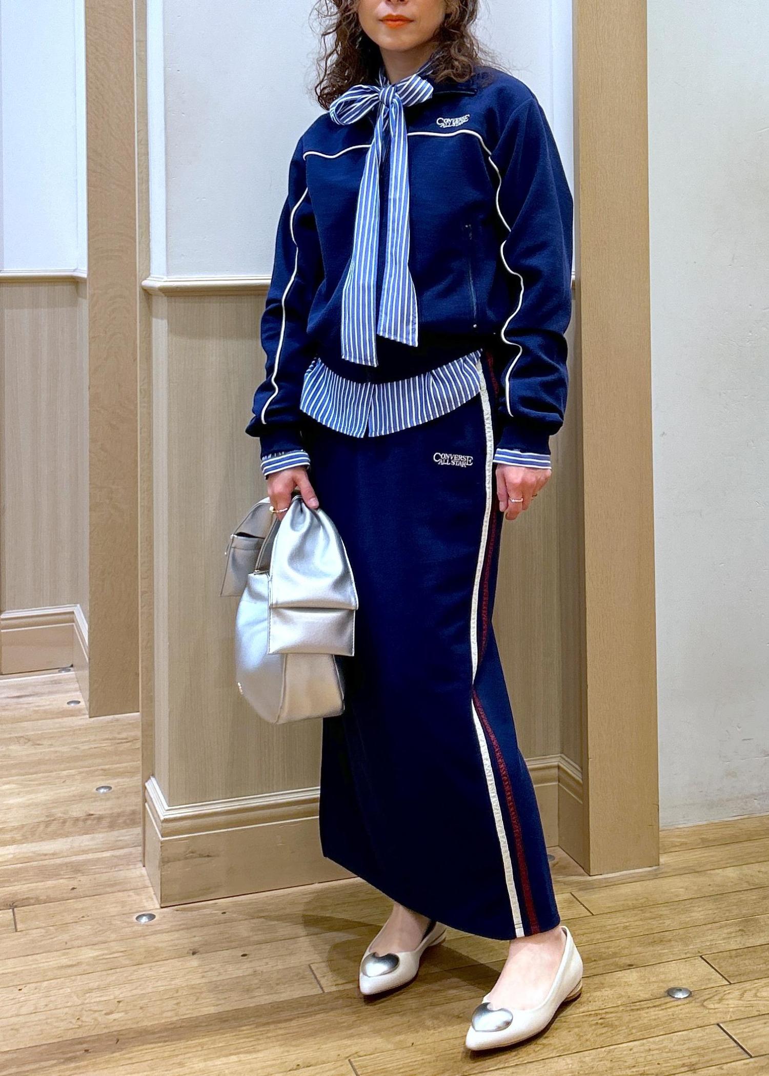 アウトレットVIS【CONVERSE】VIS別注配色ライントラックジャケット【セットアップ対応】ネイビー / M¥3,080レビュー153cmでウエスト下くらいの丈感です。