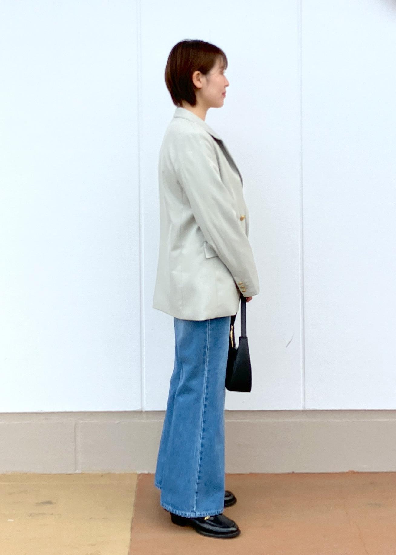 ジャケットはグリーンにしていますがお手持ちのジャケットをデニムと合わせてカジュアルに着こなすのもおすすめです!インナーはリブニットを着用していますがトレーナーやスウェットでさらにカジュアル要素を強めても◎セレモニーシーズンがおわっても着回しを楽しんでいただけたら嬉しいです♪