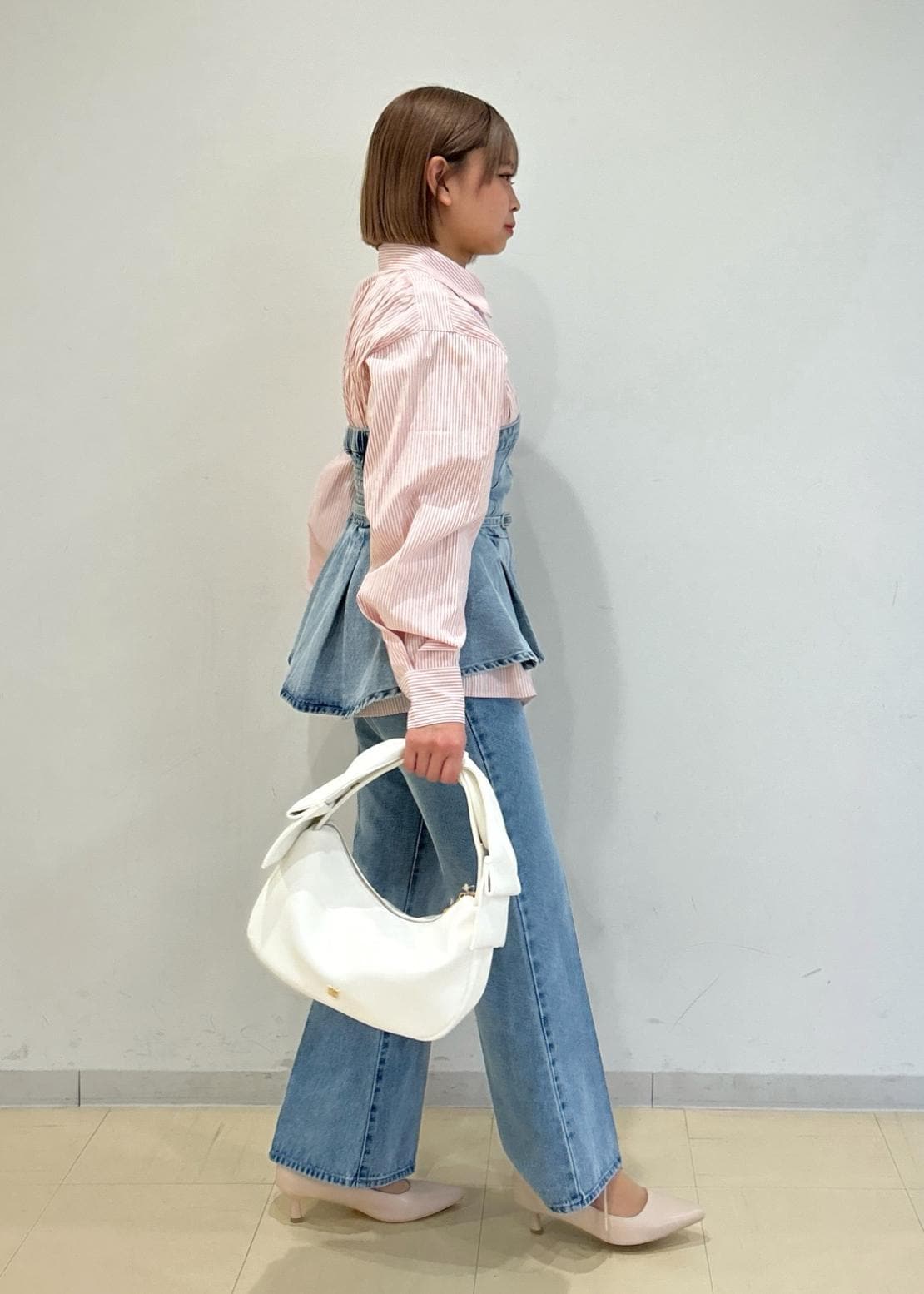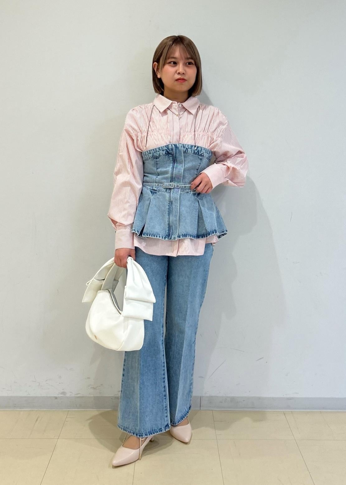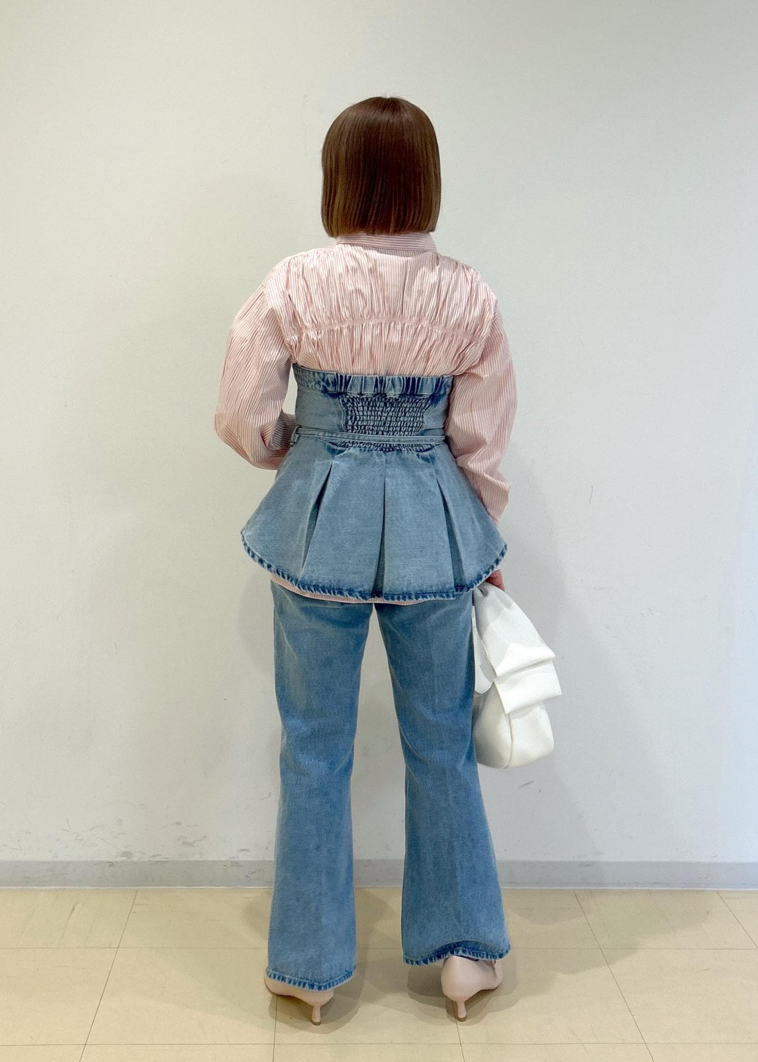 VISデニムフレアベアトップ/洗える・セットアップ対応サックス / F¥6,589レビューフィット感がありますが、後ろがゴムになっているので苦しくはないです!