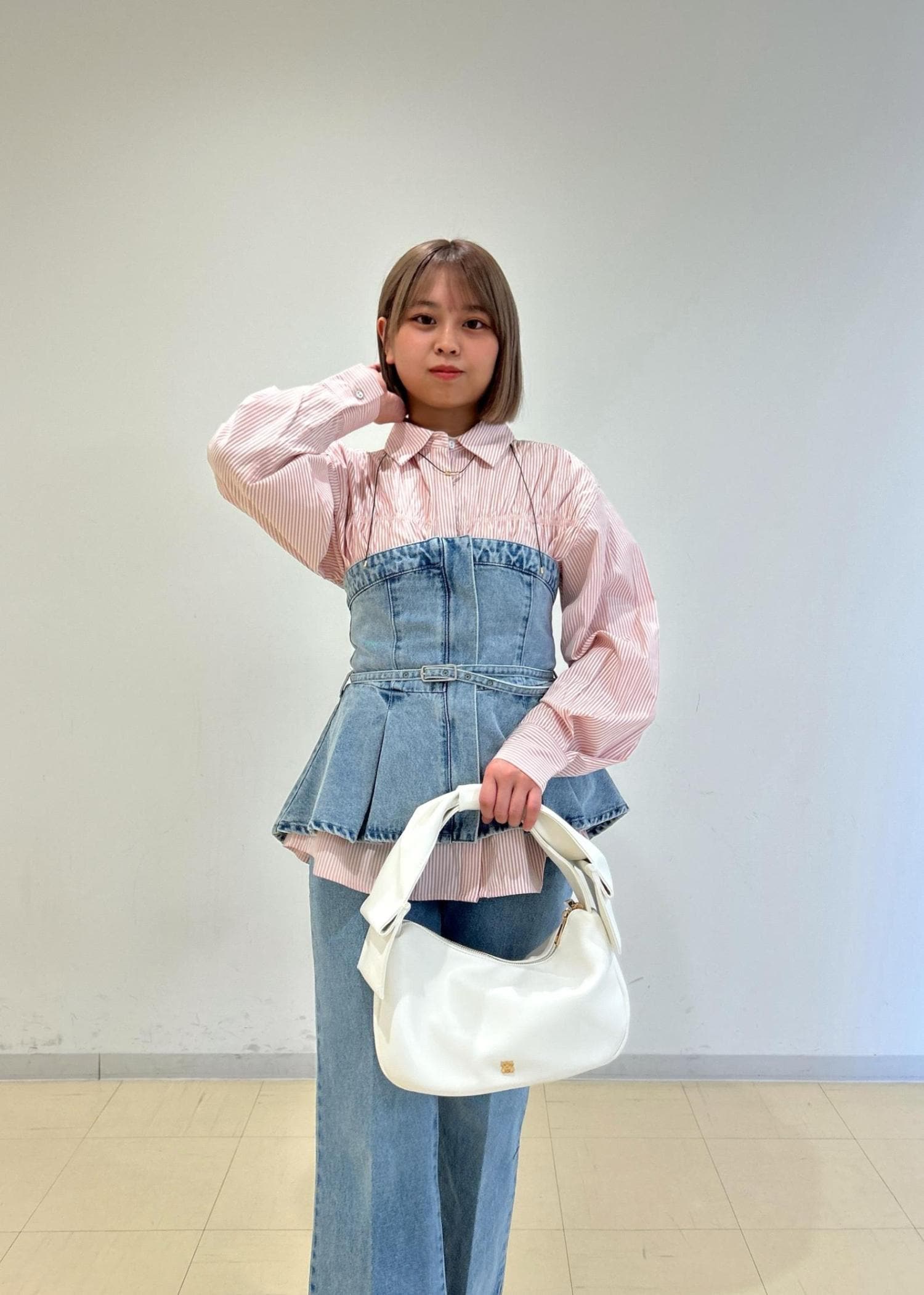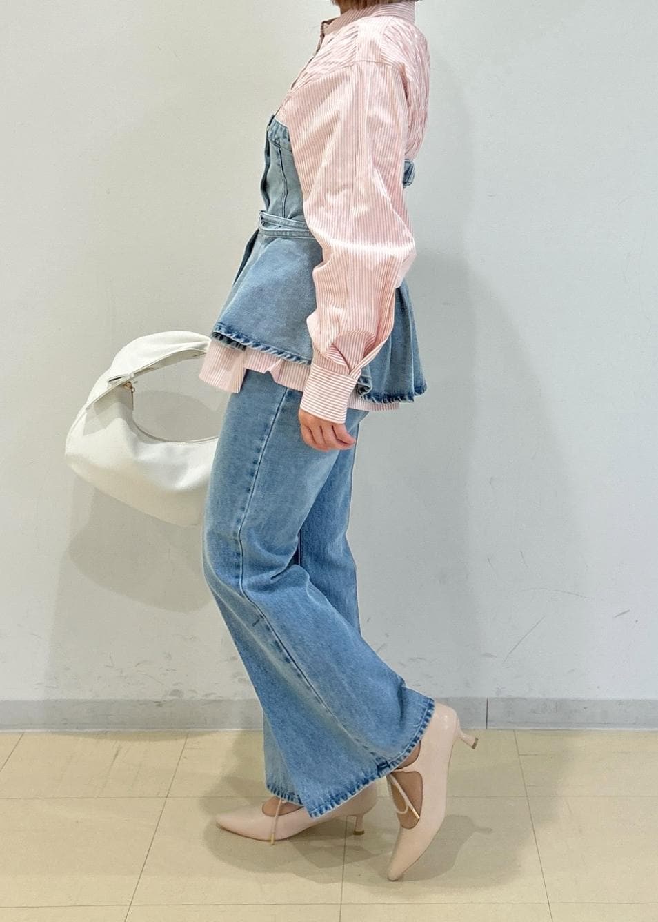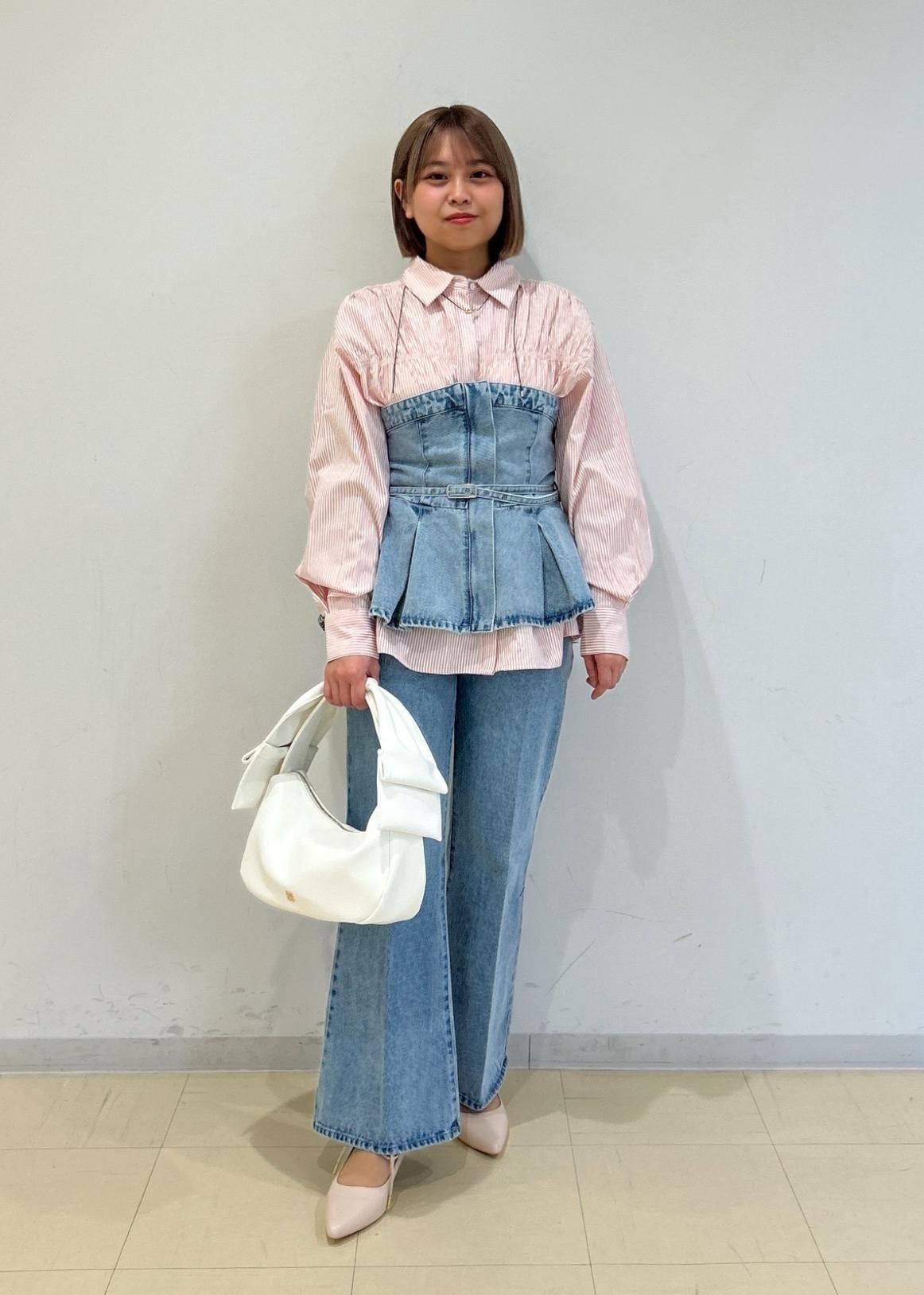 VISデニムフレアベアトップ/洗える・セットアップ対応サックス / F¥6,589レビューフィット感がありますが、後ろがゴムになっているので苦しくはないです!