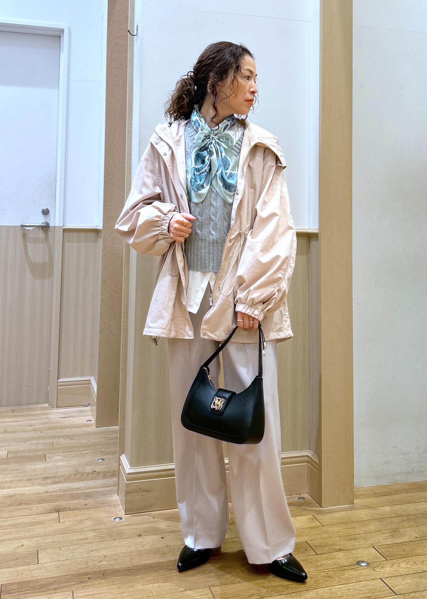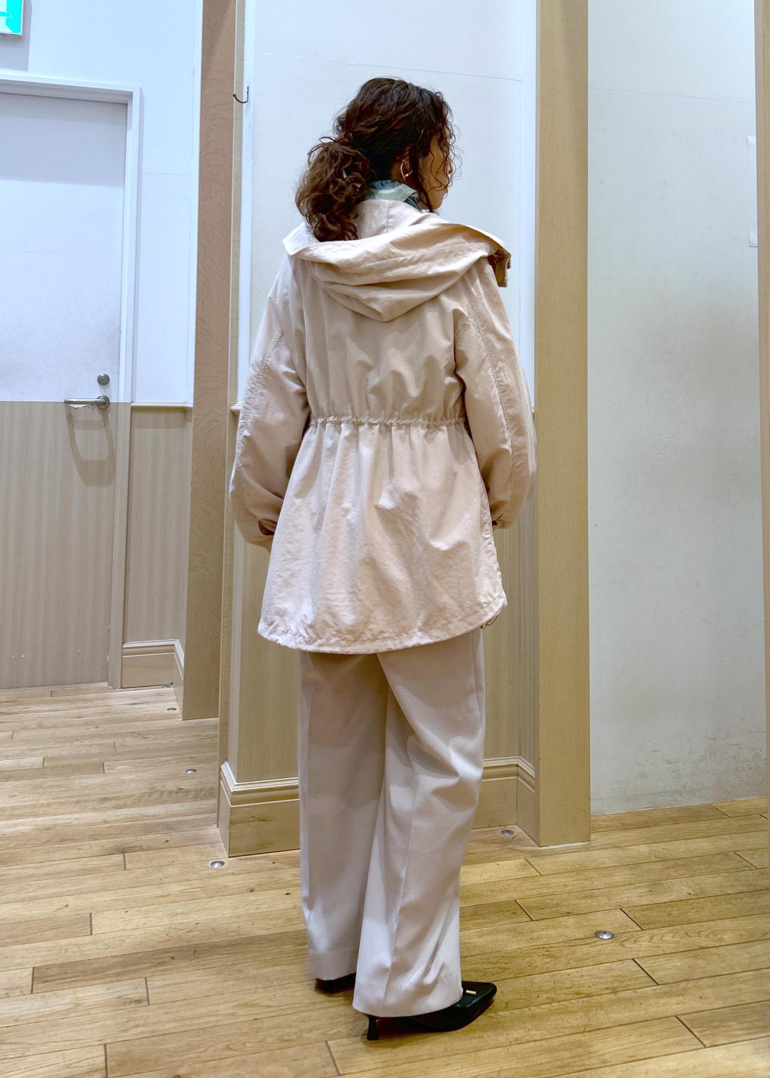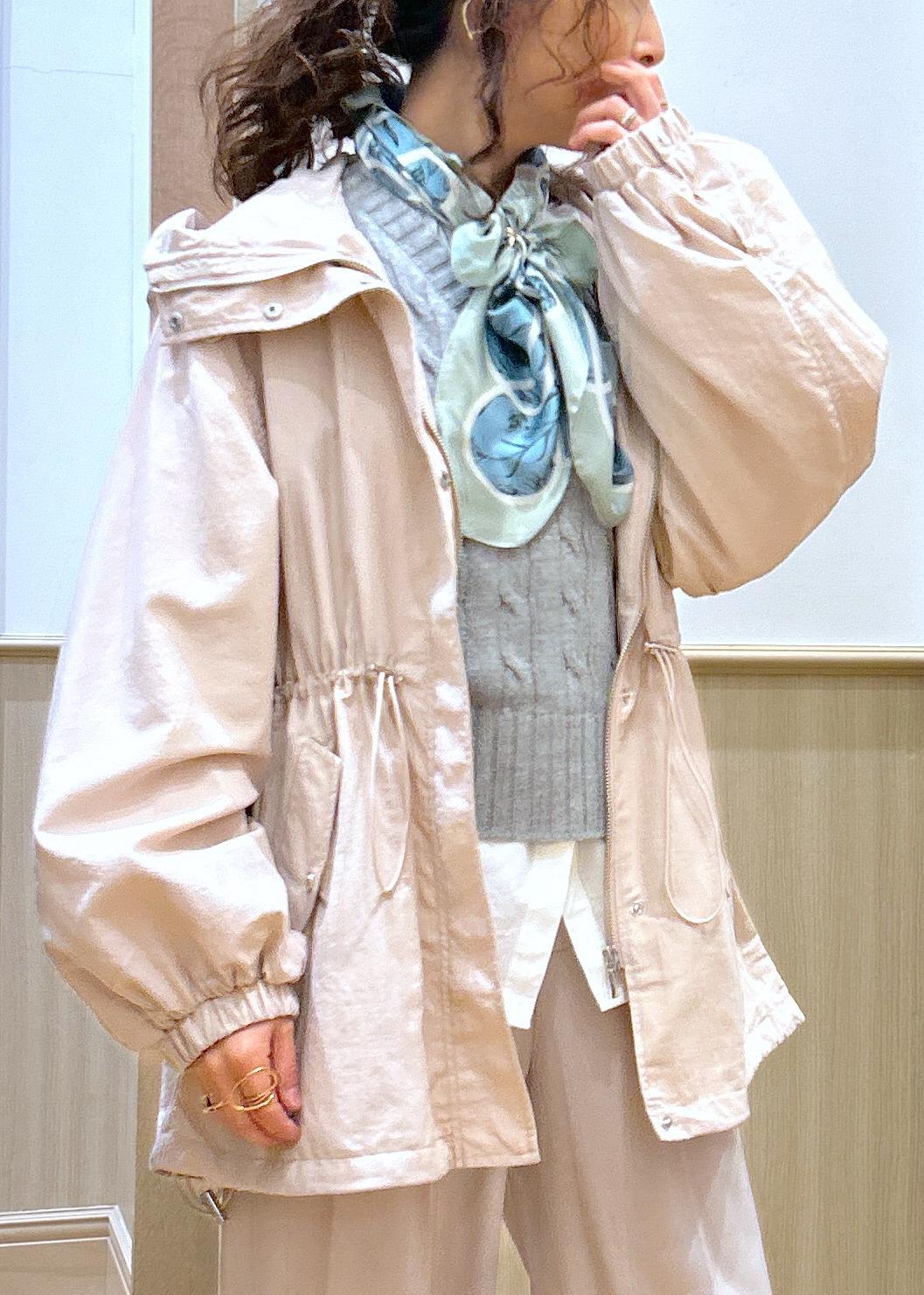 ビスで毎年人気のマウンテンパーカーの淡いカラーコーデです。