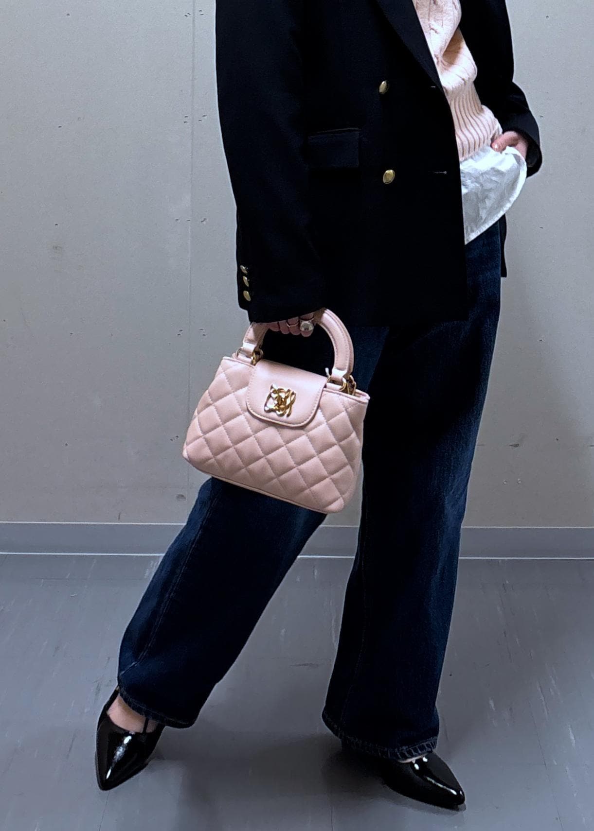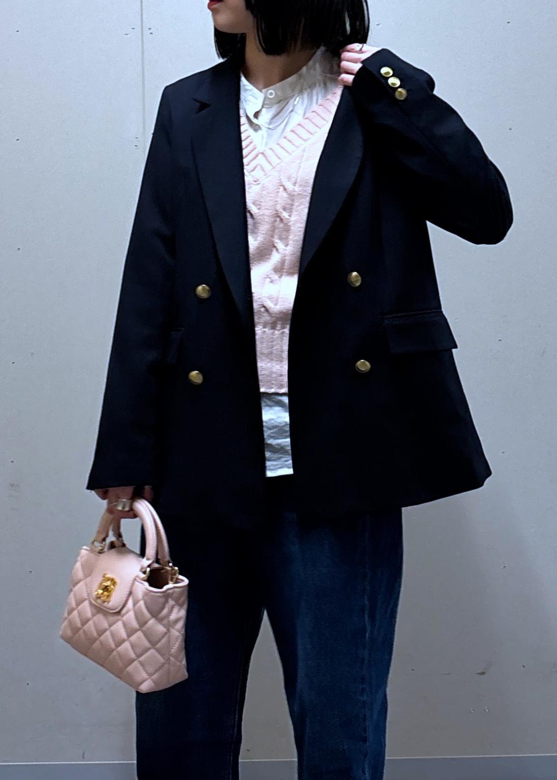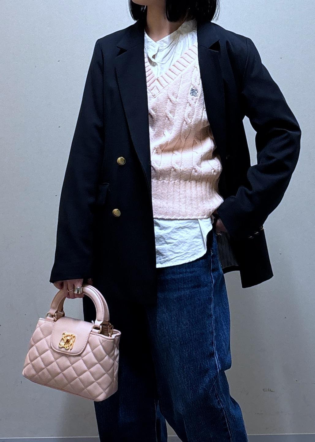 ベストとバッグでほんのりピンクを使って可愛らしさを❤︎