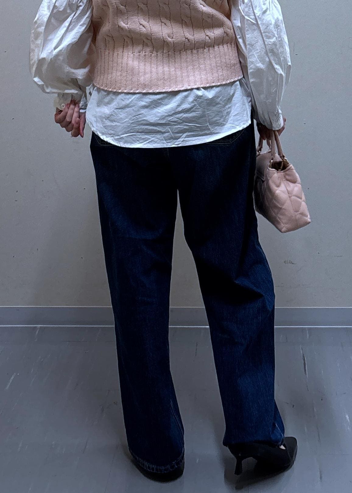 アウトレットVIS【洗える】ハイウエストルーズワイドデニムブルー / S¥4,395レビュー太もも周りはゆったりとしたシルエットですがハイウエストで裾にかけて細くなるので細見え効果抜群◎