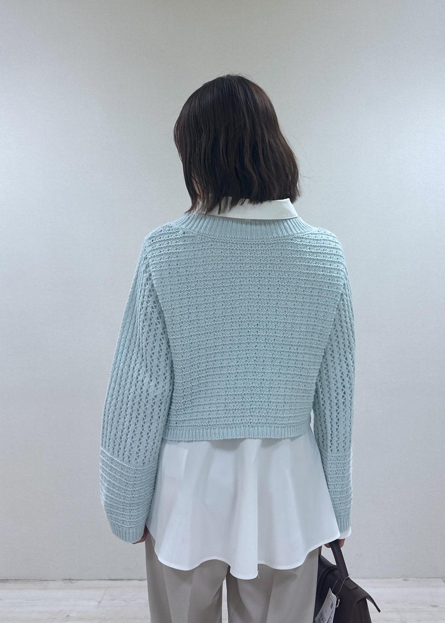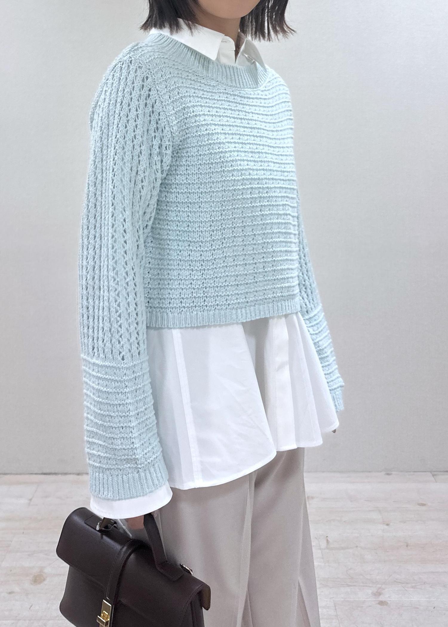 アウトレットVIS透かし編みニットプルオーバーサックス / F¥2,196レビュー程よいゆったり感でレイヤードもしやすいニットです。