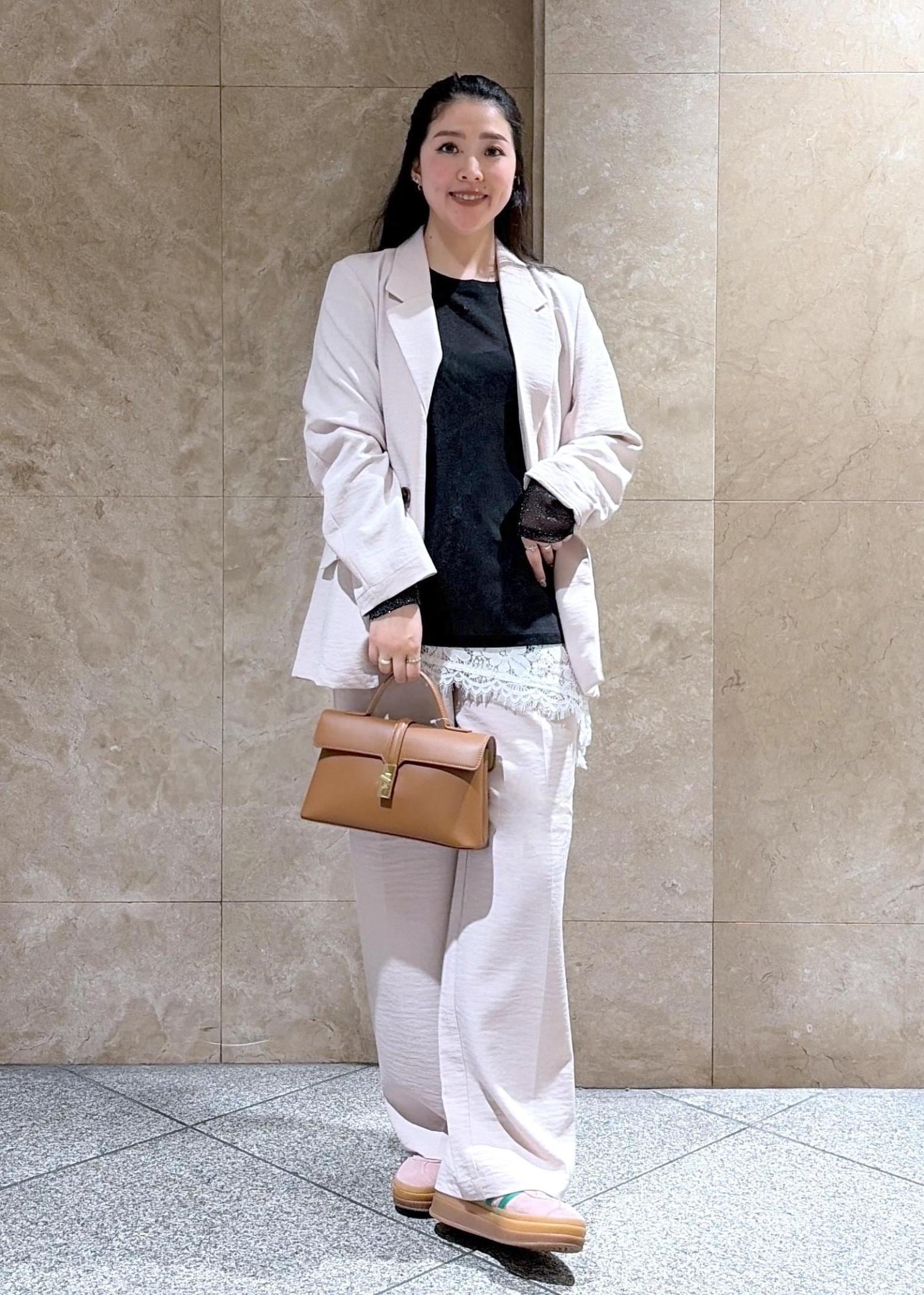 ミニ財布、イヤホン、携帯、ハンカチが入るサイズです!ショルダーが付いてませんが持ち手もしっかりしていてとても軽いので肩にも掛けやすかったです!
