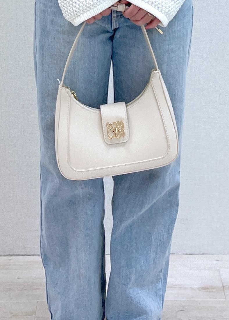 VIS【新色追加】【180℃美人見え】ハンドルリボンワンショルダーバッグキナリ / F¥5,929レビューフロントのひねり金具がポイントのワンショルダーです。
