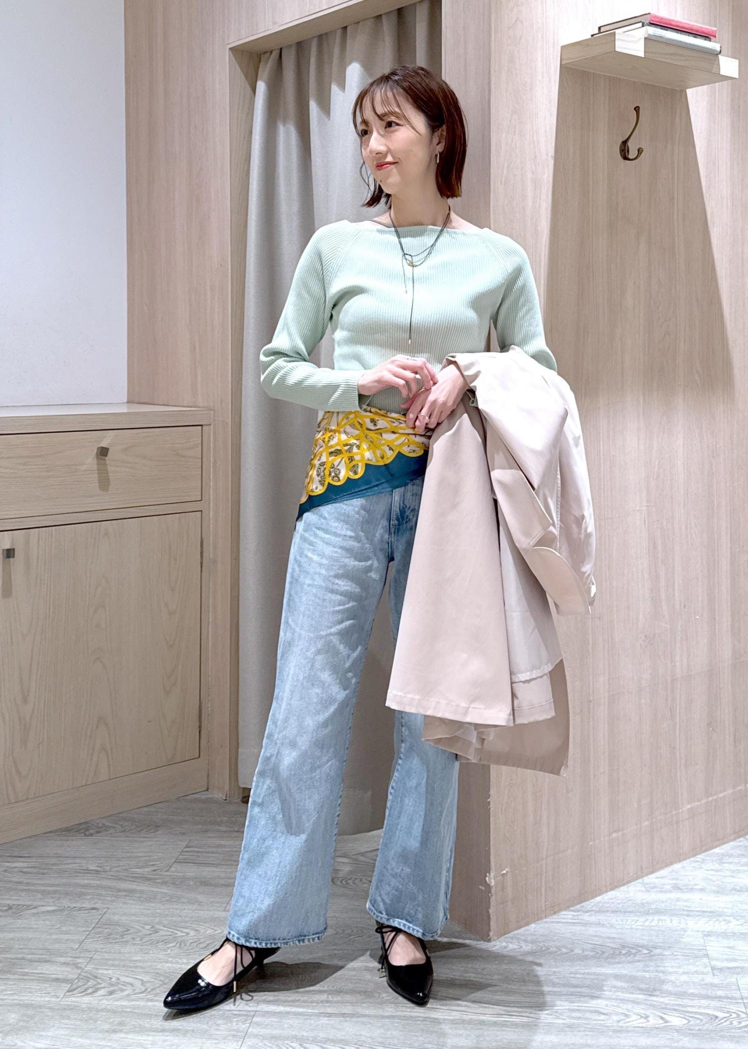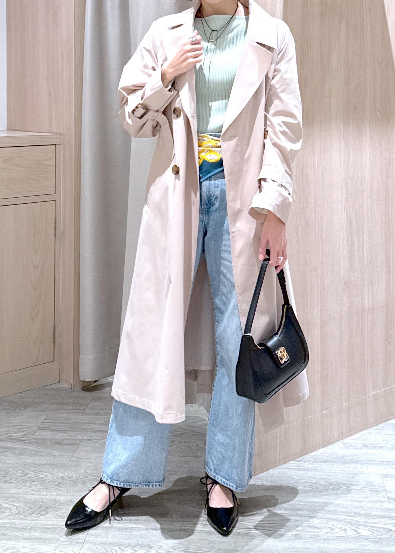 トレンチコート×デニムのカジュアルスタイルに、今年らしいスカーフをプラスして大人女子のキレイめカジュアルスタイルにしました!