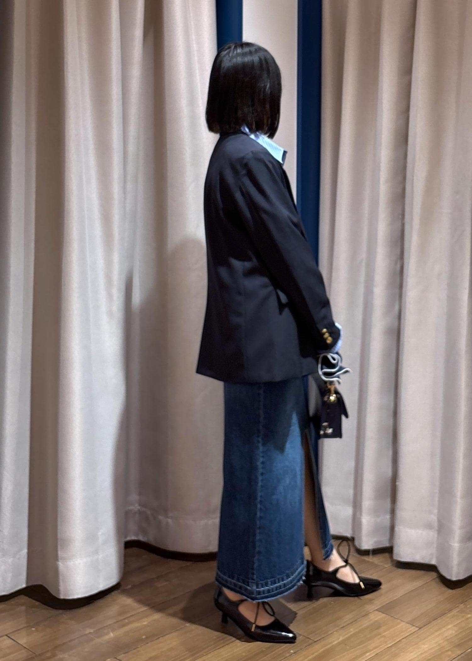 タイトシルエットで生地もしっかりしているので、大胆に開きすぎず着れます✨