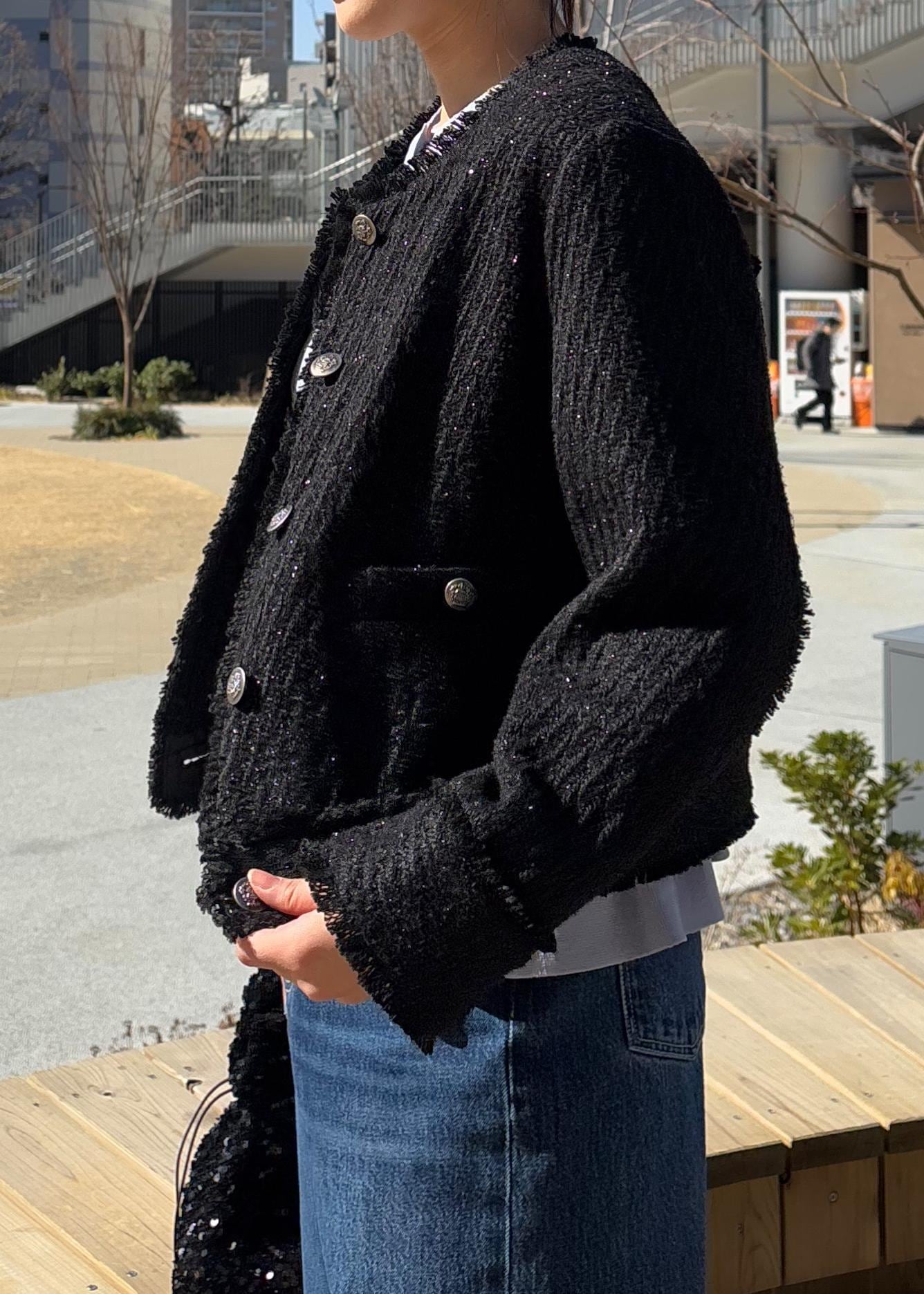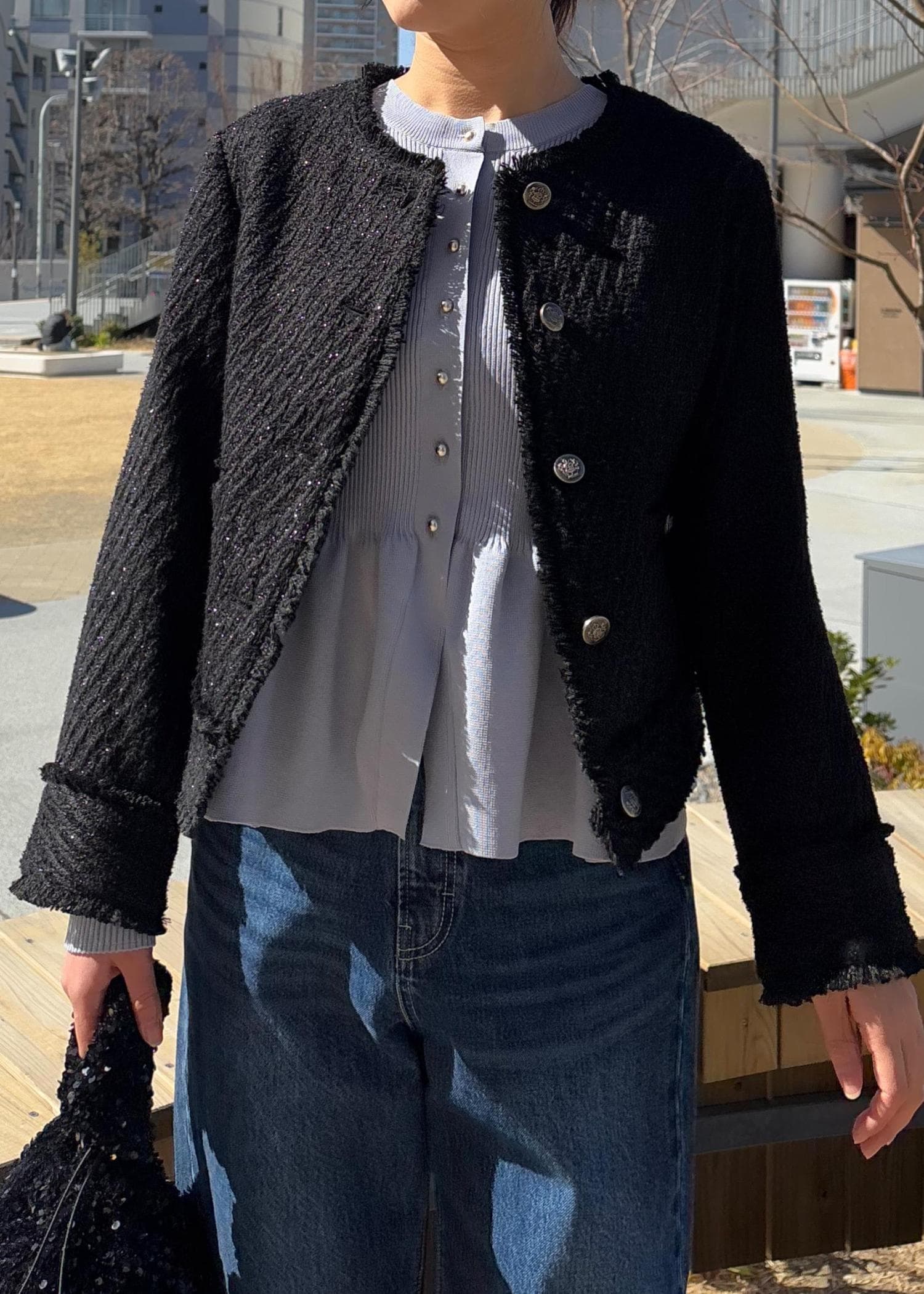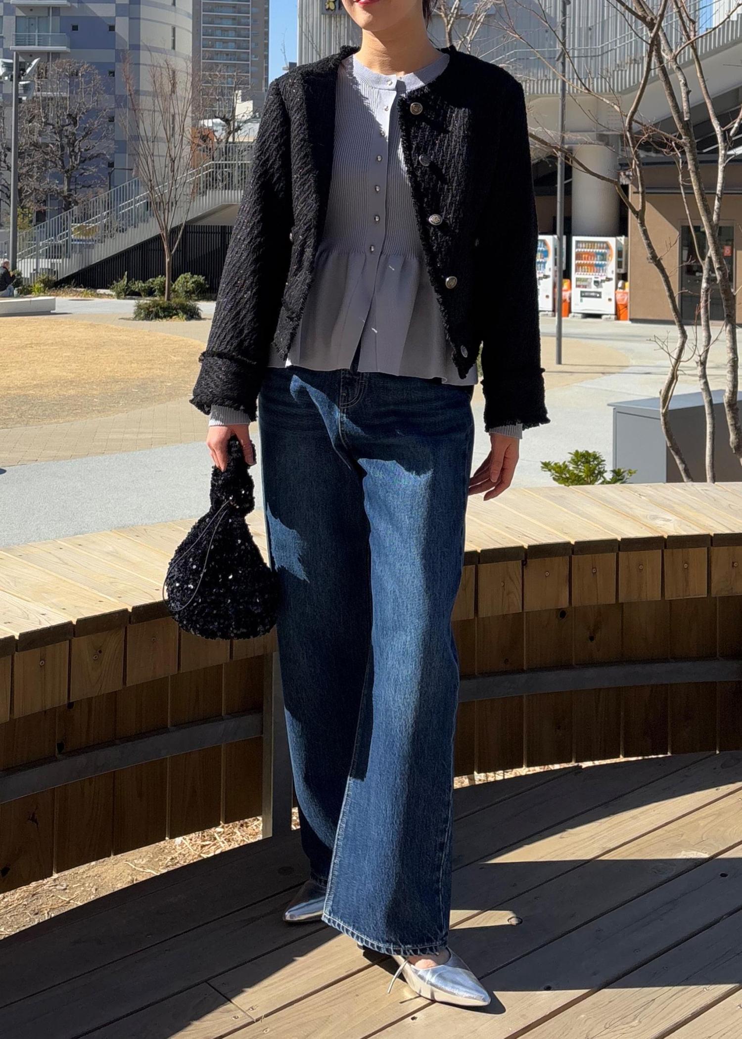 落ち着いた雰囲気の色味ですが、ラメ感やペプラムトップスで着映えします!