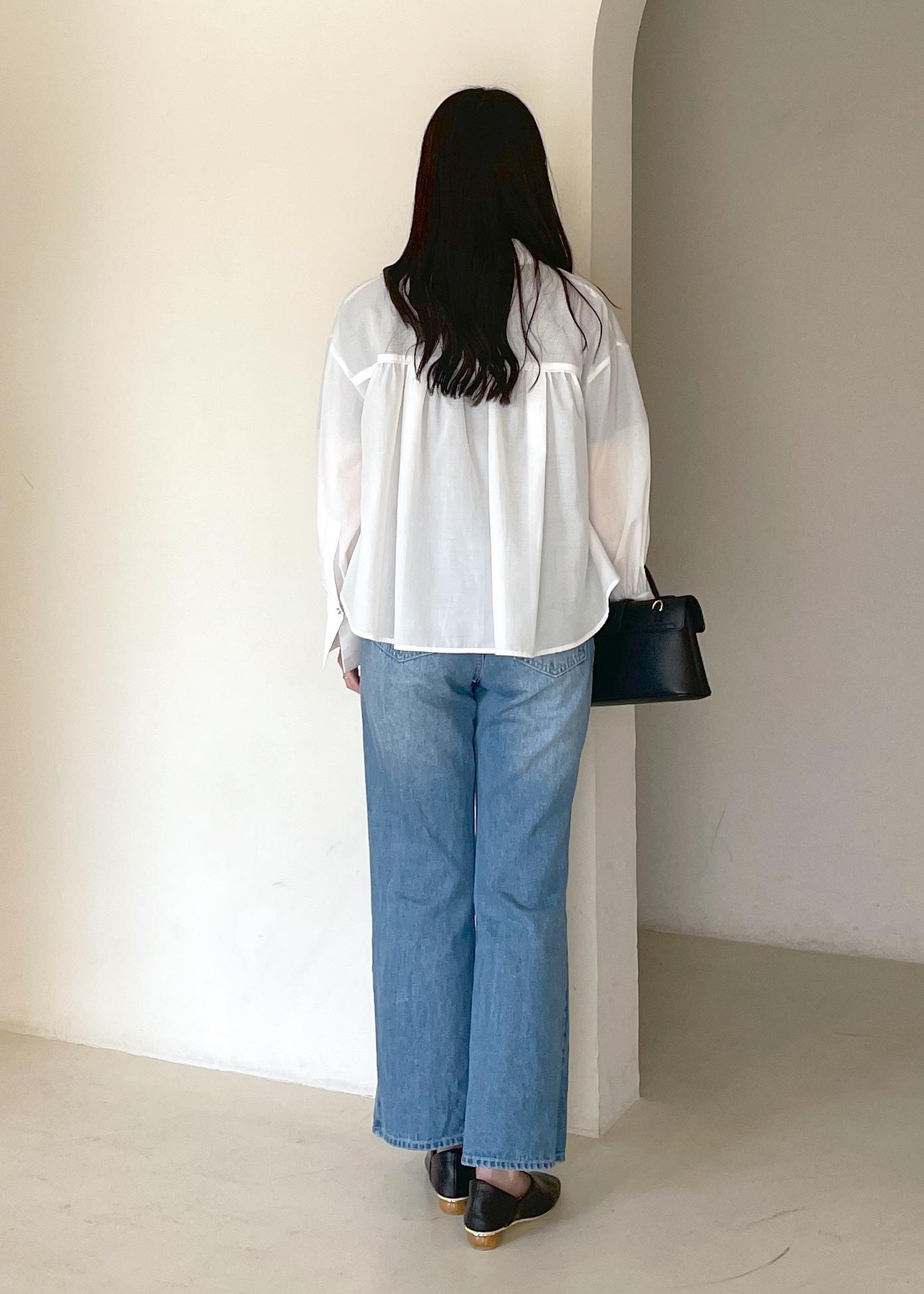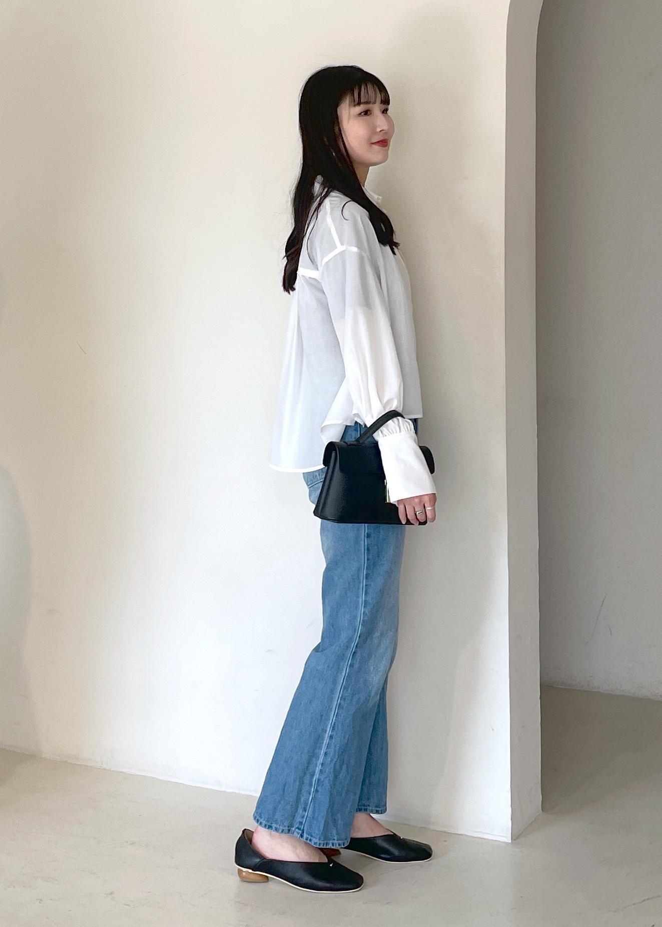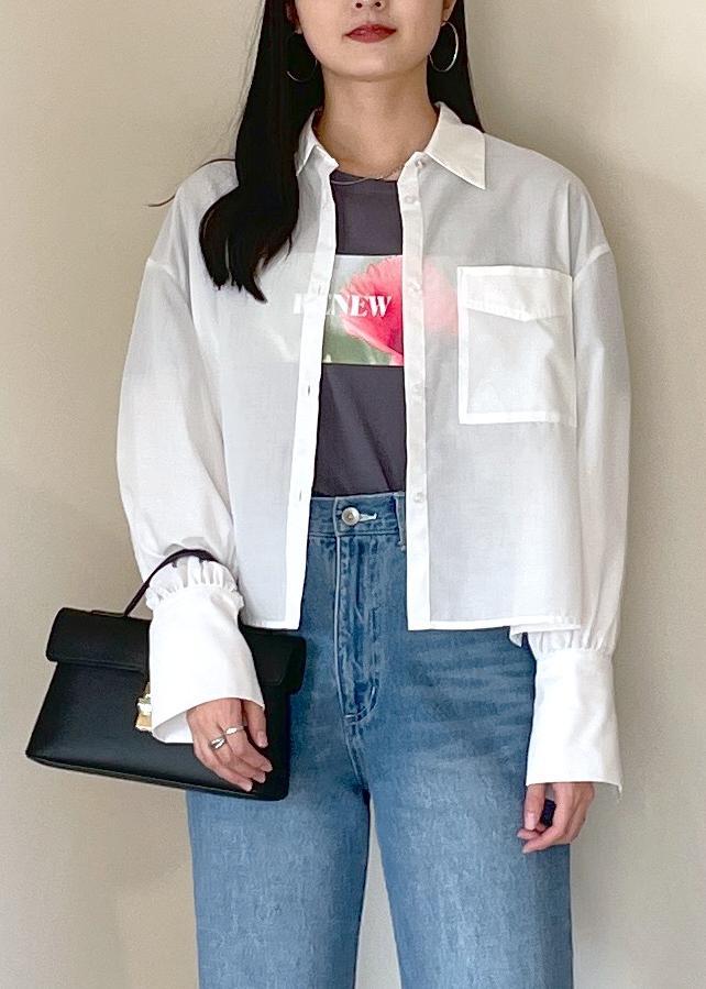 アウトレットVIS【防シワ/接触冷感/洗える】ボリュームスリーブショート丈シアーシャツホワイト / F¥2,196レビュー短丈で女性らしいシルエット。