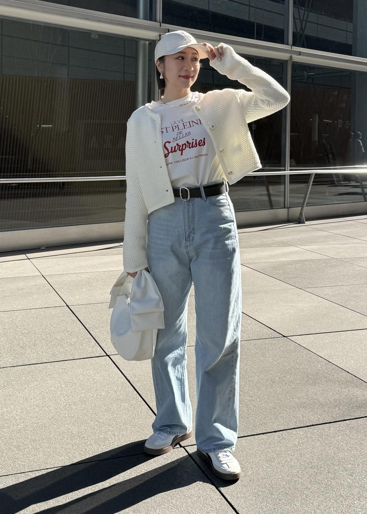 キャップも被ってるけどニットジャケットのキレイめ感が強いのでカジュアル過ぎが苦手な方にもおすすめです♪