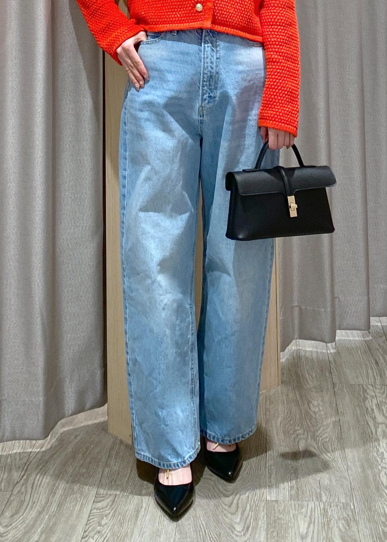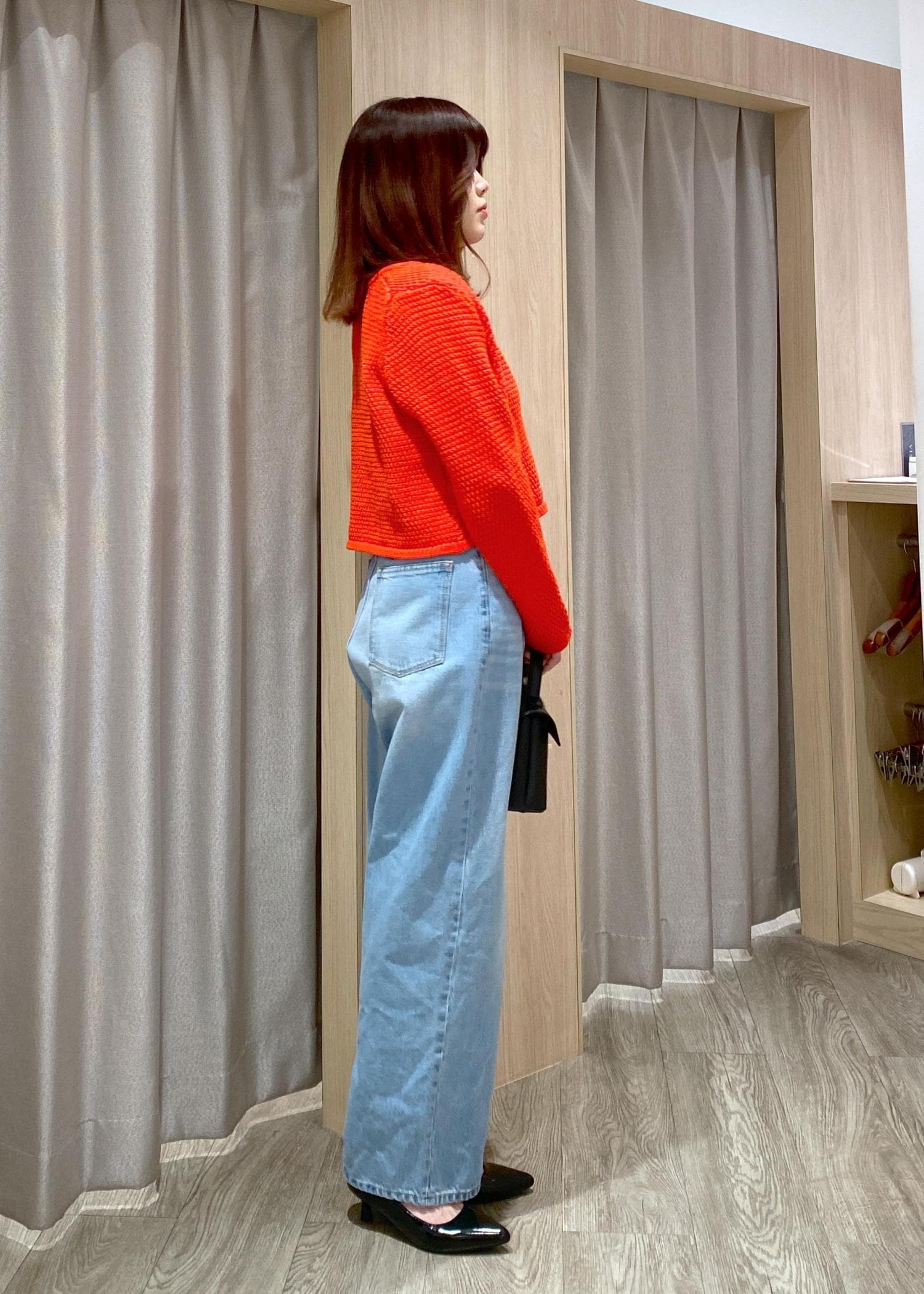 アウトレットVIS【洗える】ハイウエストルーズワイドデニムサックス / M¥4,395レビュー161cm/Mサイズ着用。重ね着でインしても窮屈感がなく着られるウエストサイズでした。