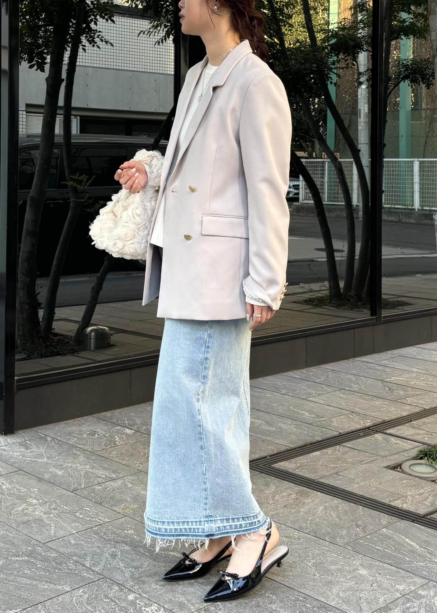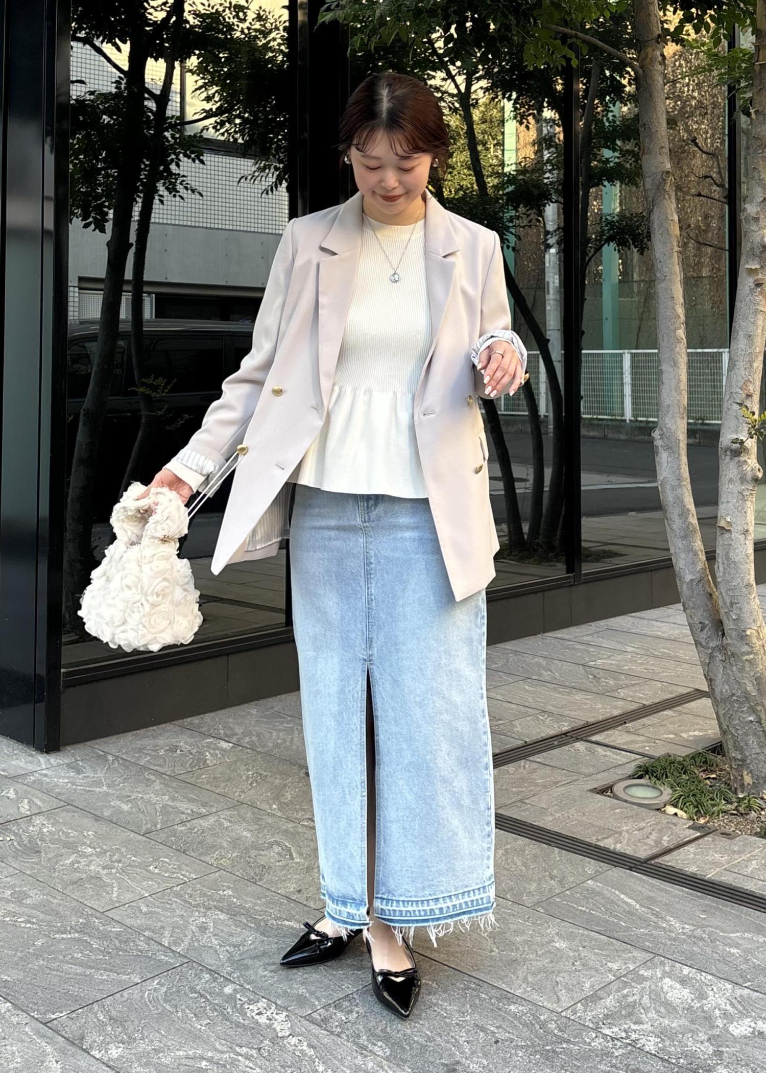 アウトレットVIS【洗える】アイラインウォシュデニムスカートサックス / M¥3,516レビュー長さもあり、深めな前スリットなので足捌きもよく、柔らかい素材が着用しやすいです◎