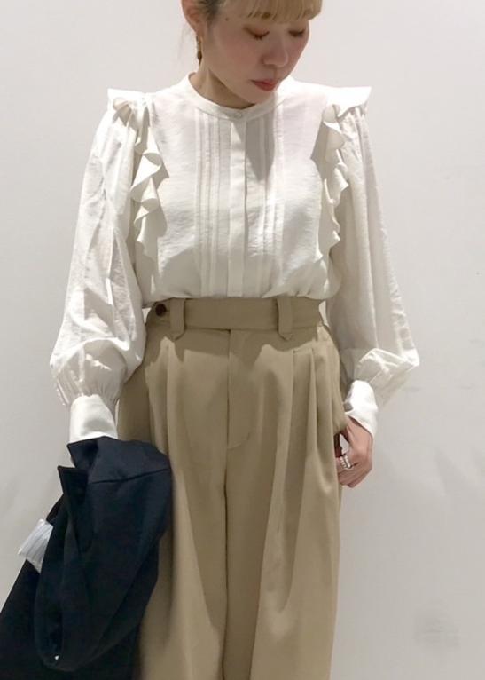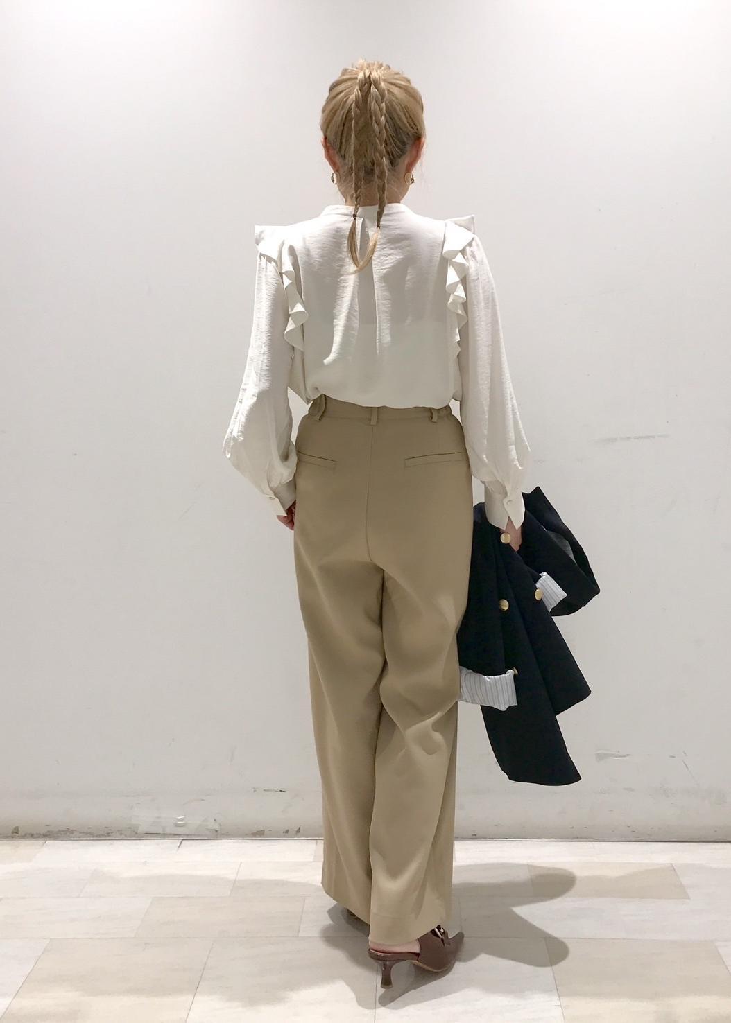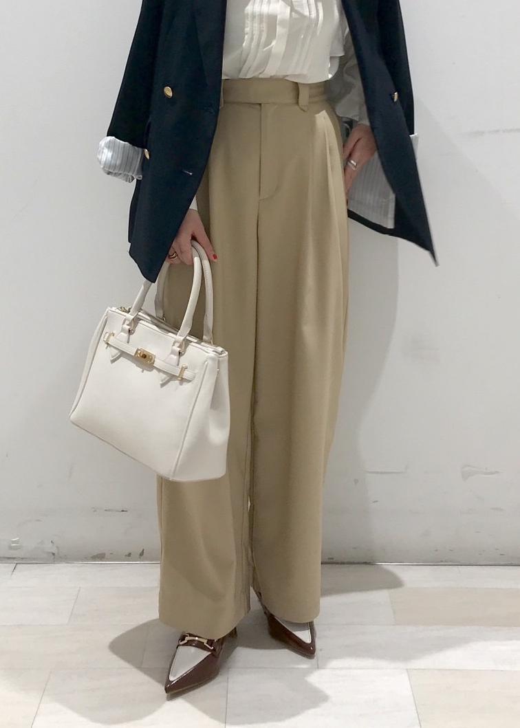 シルエットはメンズライクなのに、やや光沢感があるのと、ストンと落ち感のある生地でキレイ目なカジュアルスタイリングが完成します。