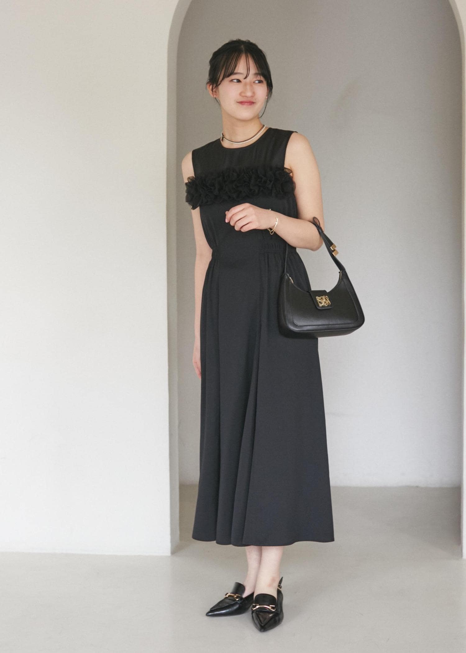 VIS【VIS DRESS】チュールフラワードッキングワンピースブラック / F¥9,999レビュー165cmでFサイズ着用、足首上(ふくらはぎ隠れるほど)の丈感です。