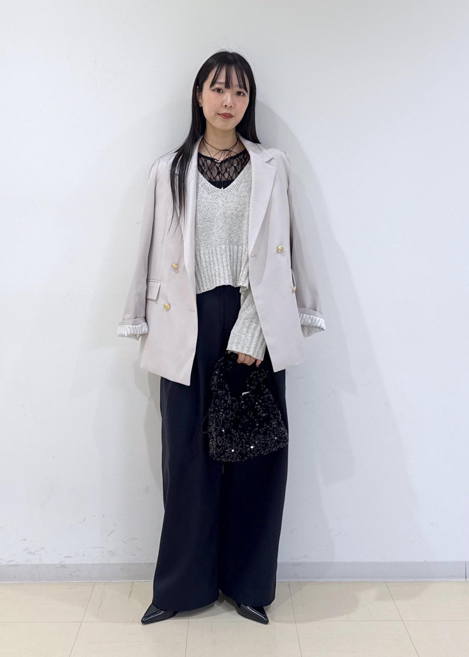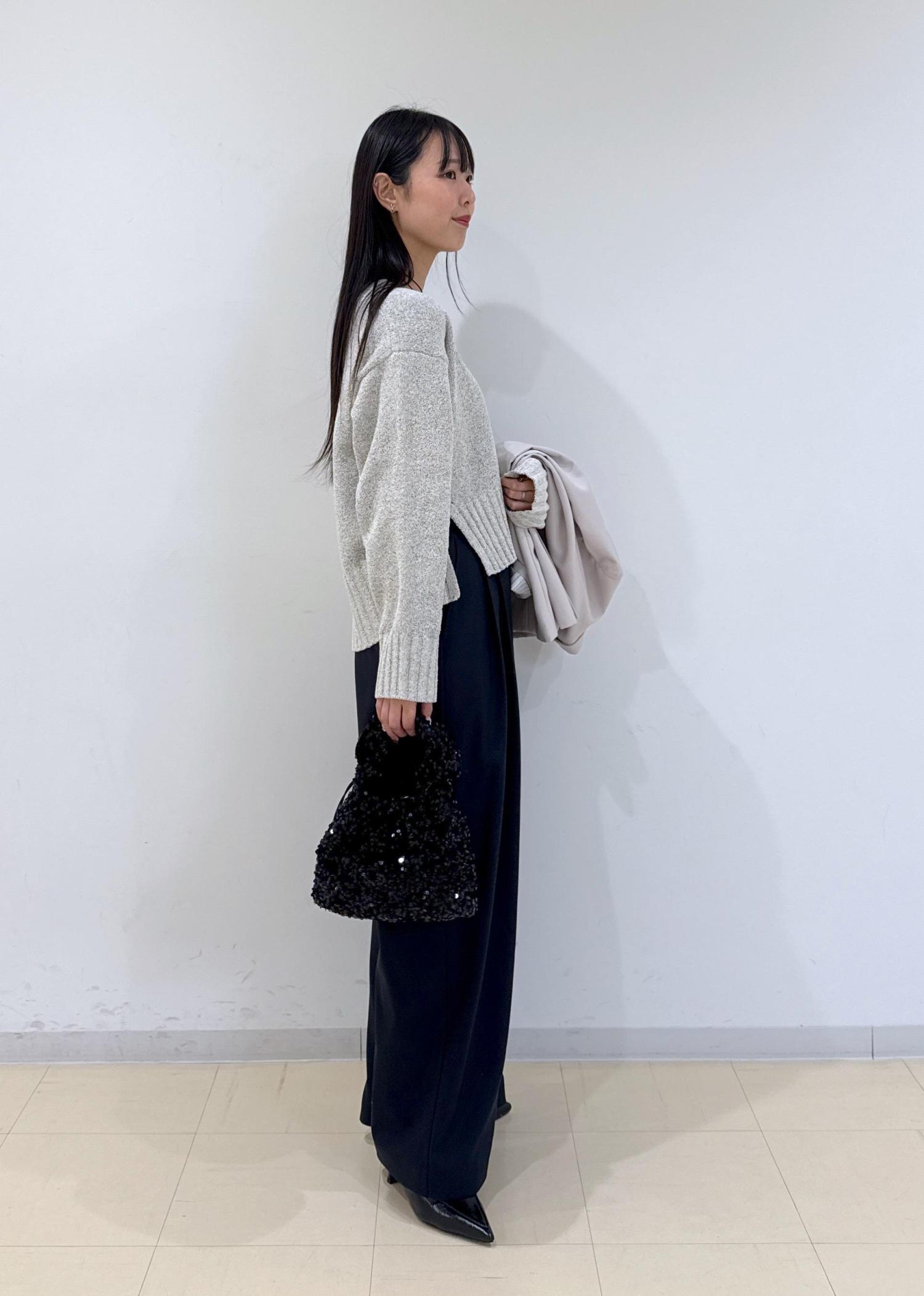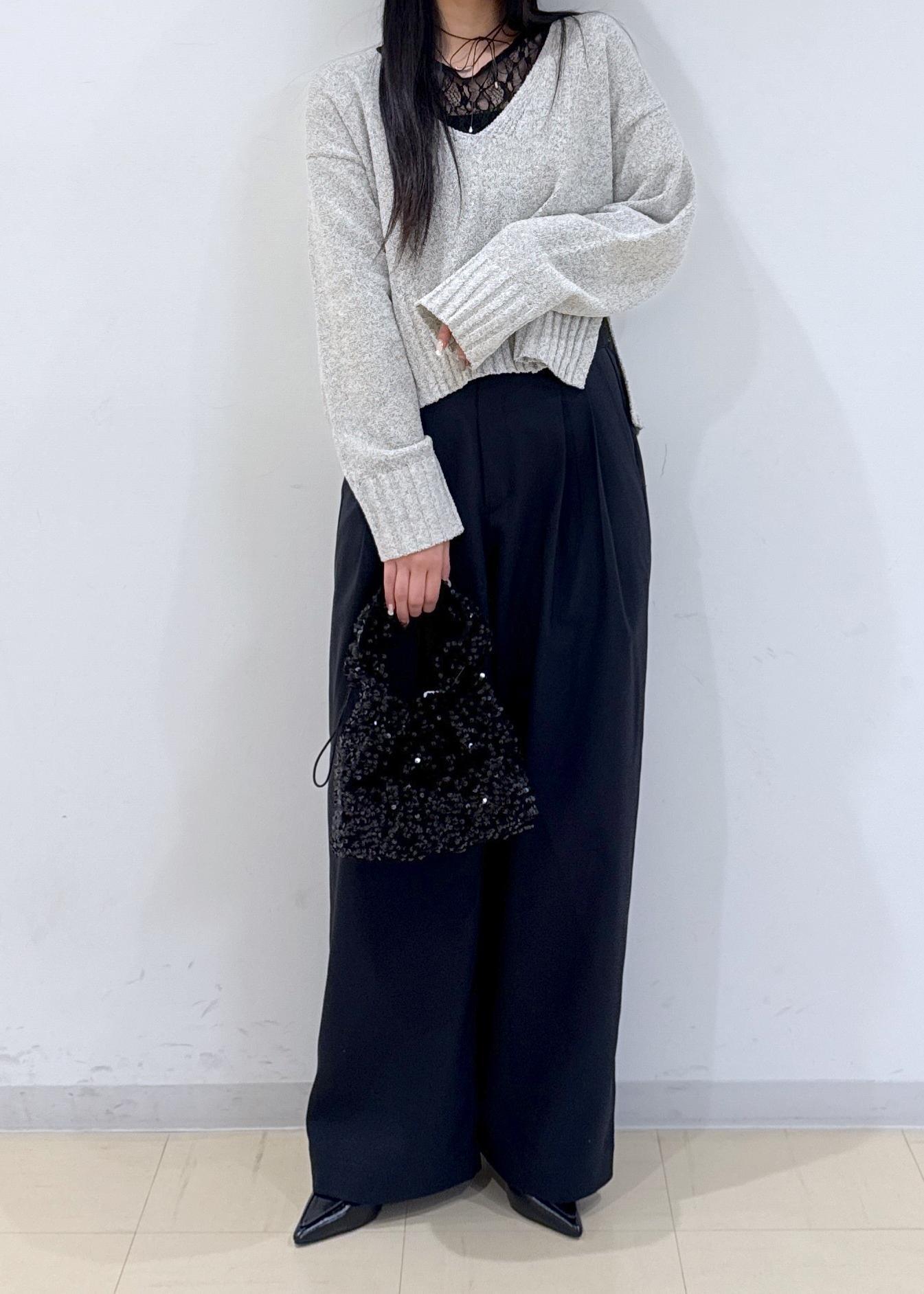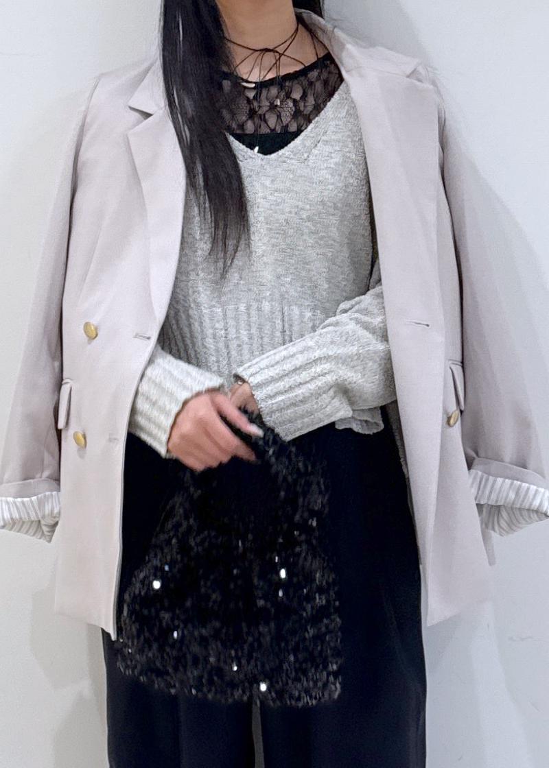 Vネックがしっかり空いているので、インナー次第で印象がガラッと変わります♪