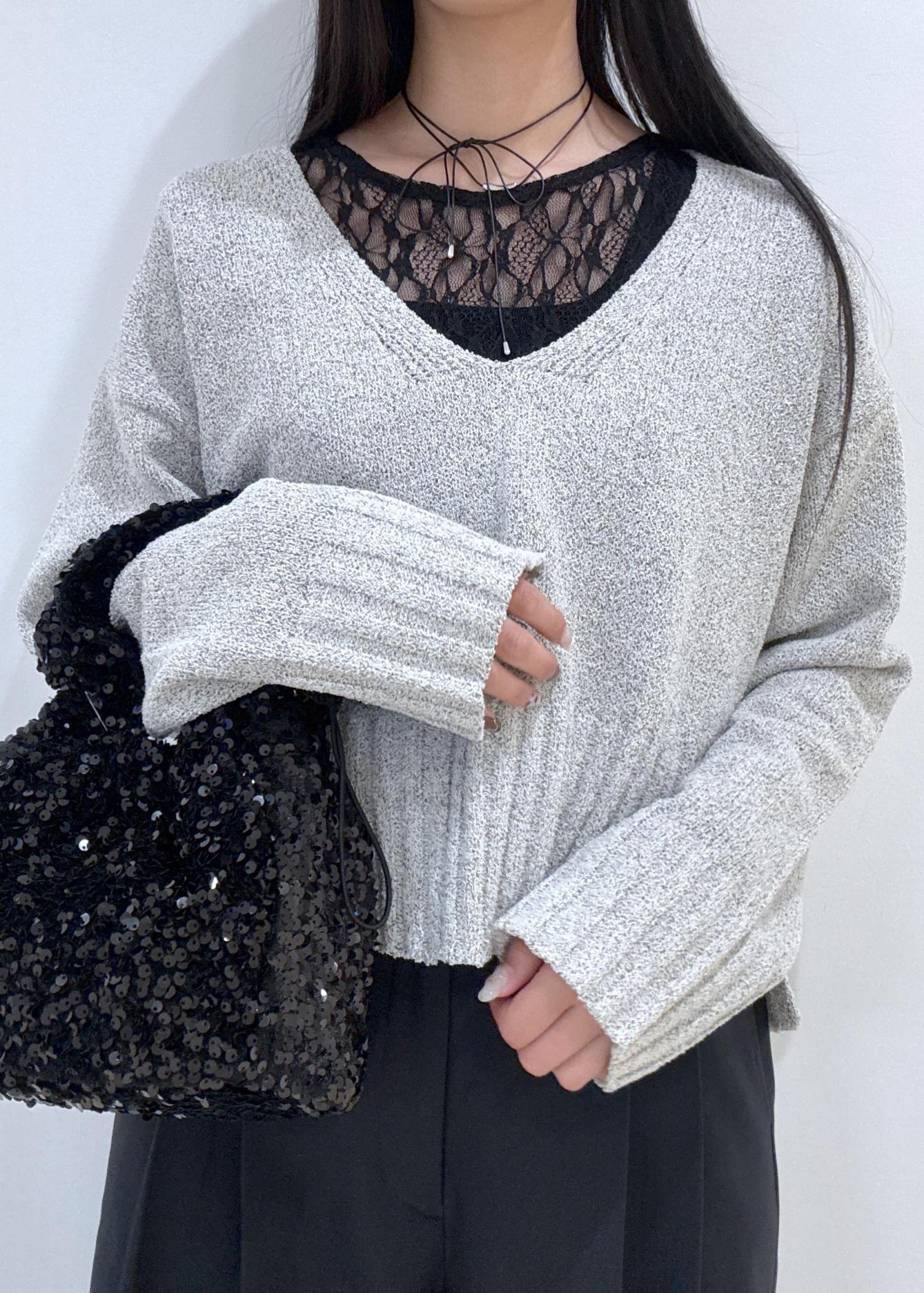 アウトレットVIS深Vネックミックスニットプルオーバーグレー / F¥2,636レビュー首元がしっかり空いているので、インナーに少し柄物を持ってきたりしても可愛いと思います。タオルのような生地感なので、汗をかいても安心です◎ザラっとした肌触りですが、痛くはなく、新品のタオルのような着心地でした笑