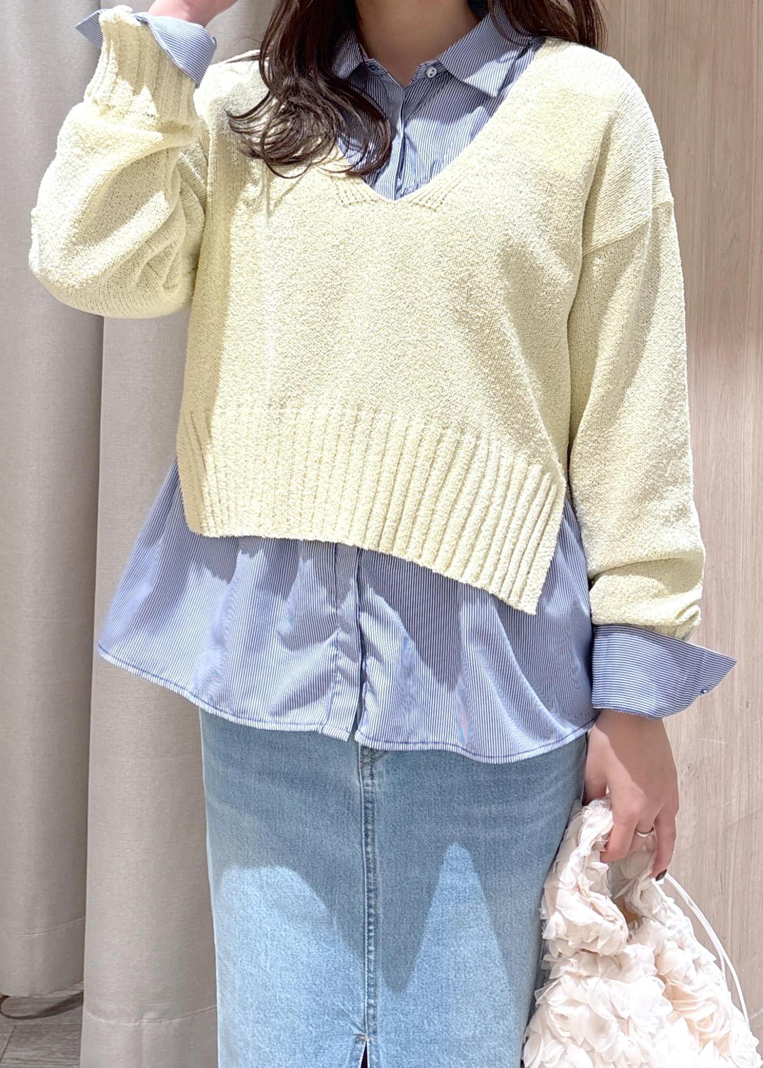 アウトレットVIS深Vネックミックスニットプルオーバーイエロー / F¥2,636レビュー柔らかい生地感で肌触りも柔らかいです。