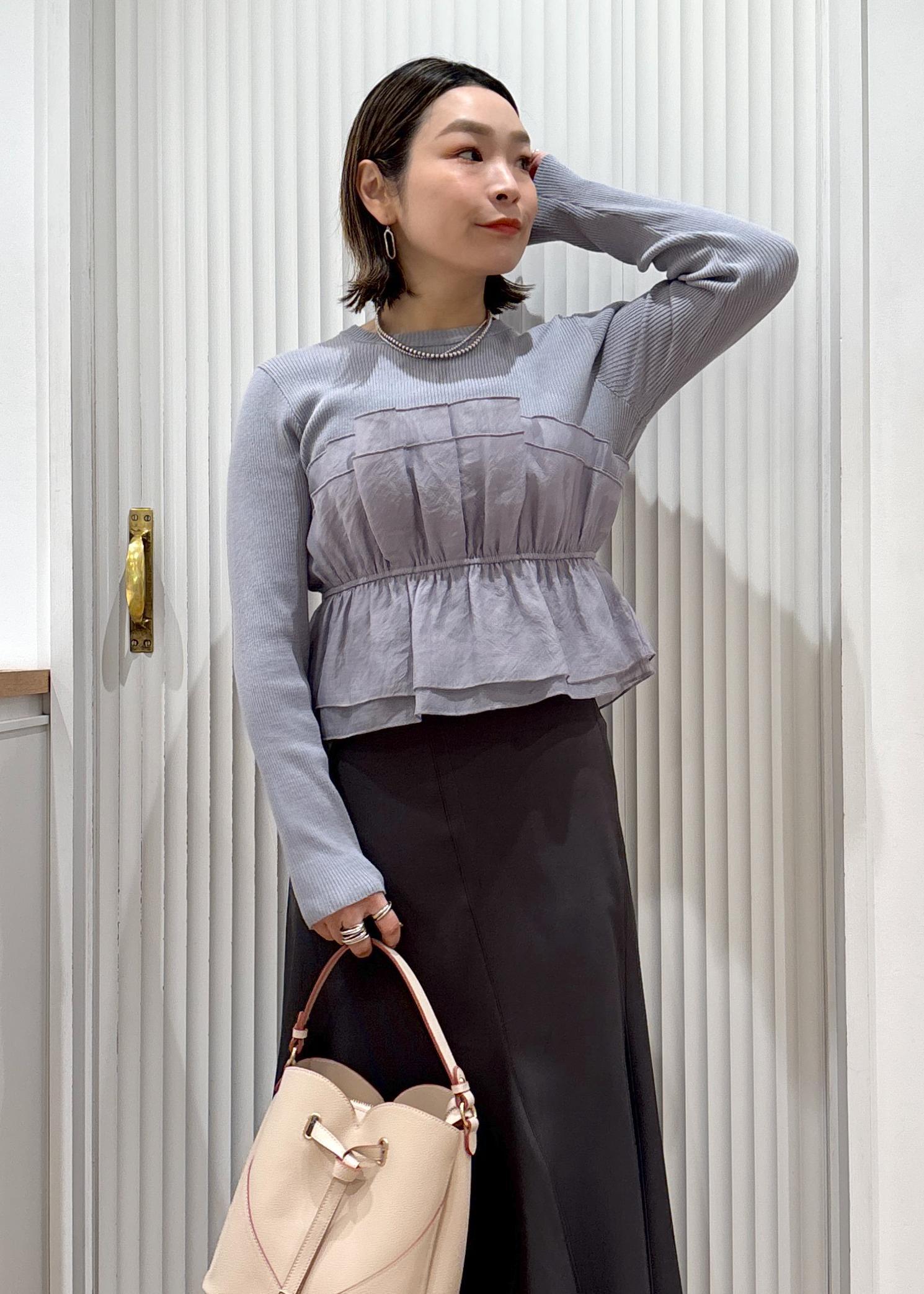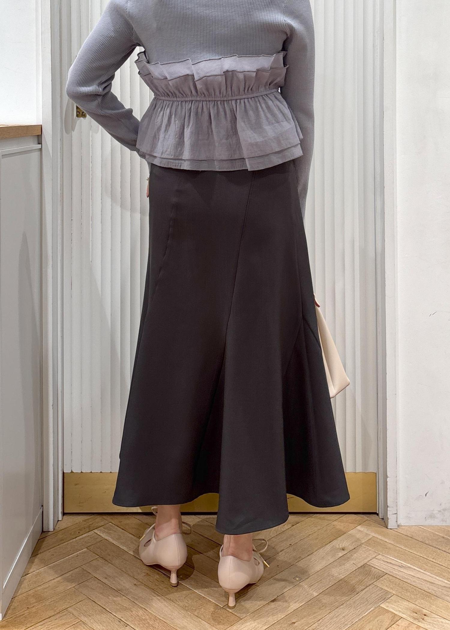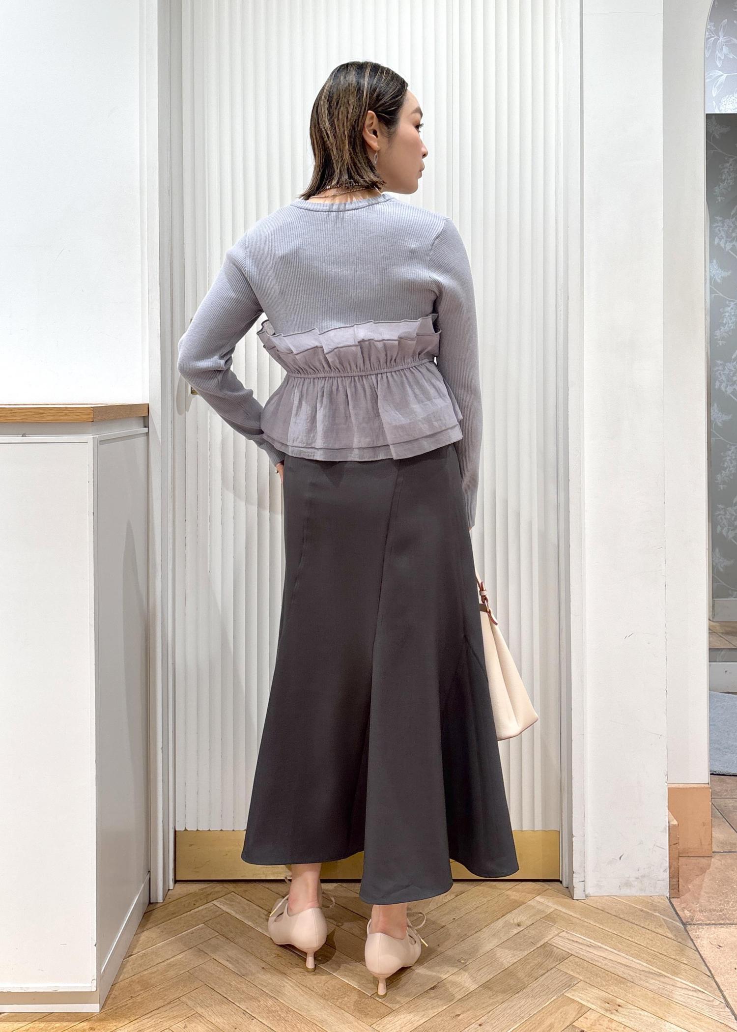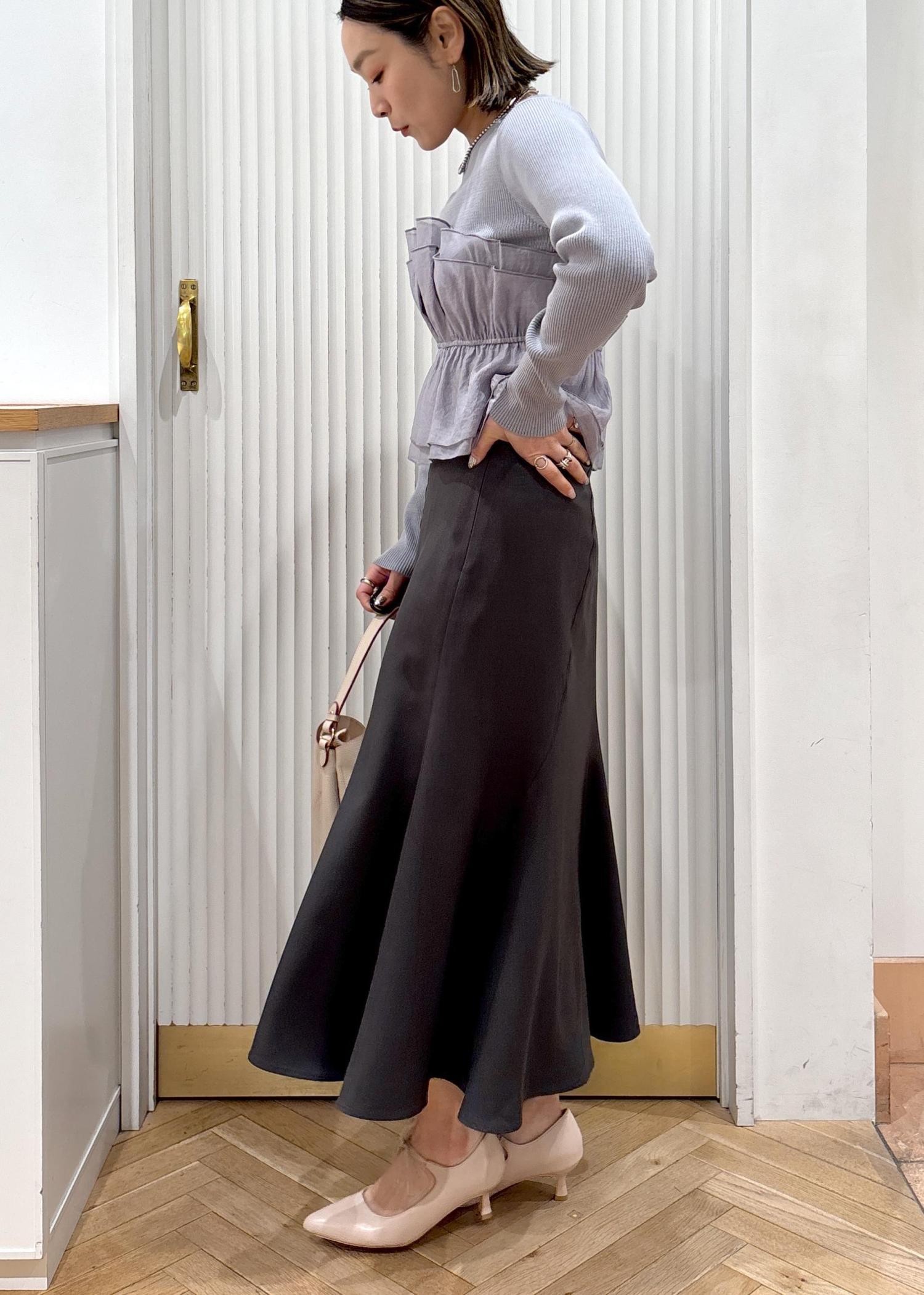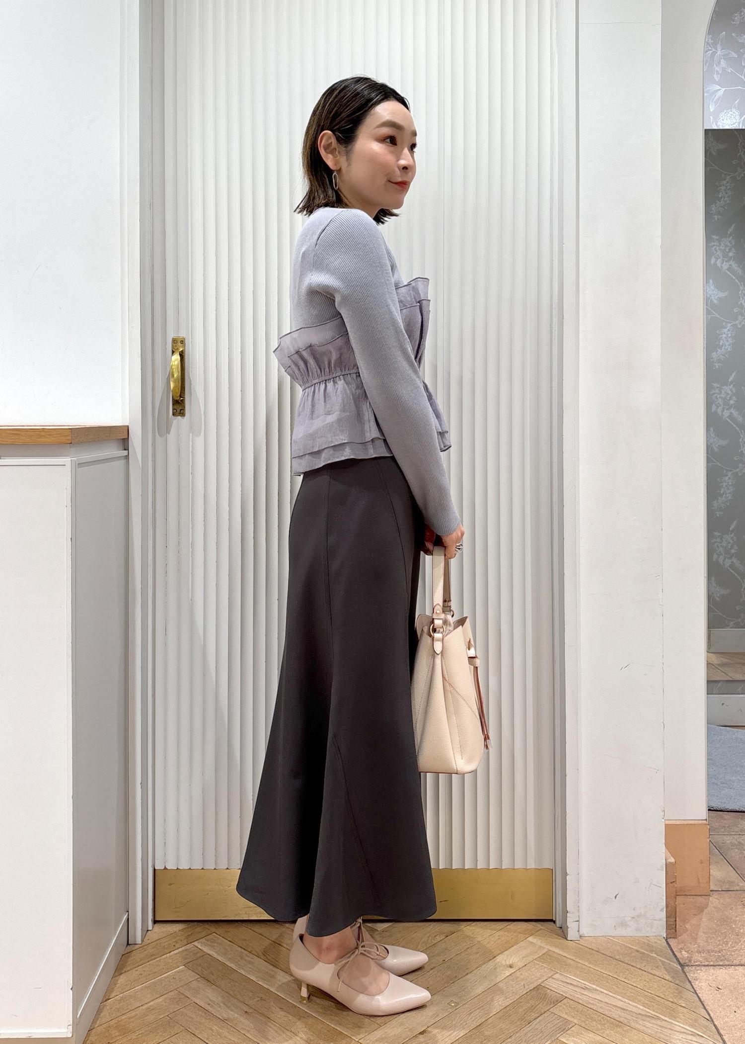 エスカルゴ切り替えマーメイドスカートで、キチンと感をプラス。華やかなスタイリングで春からお仕事、頑張りましょう♫