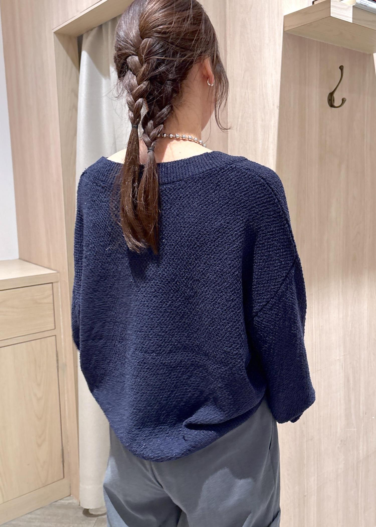 カーディガンのラメとバックのスパンコールで流行りのキラキラを取り入れました☆