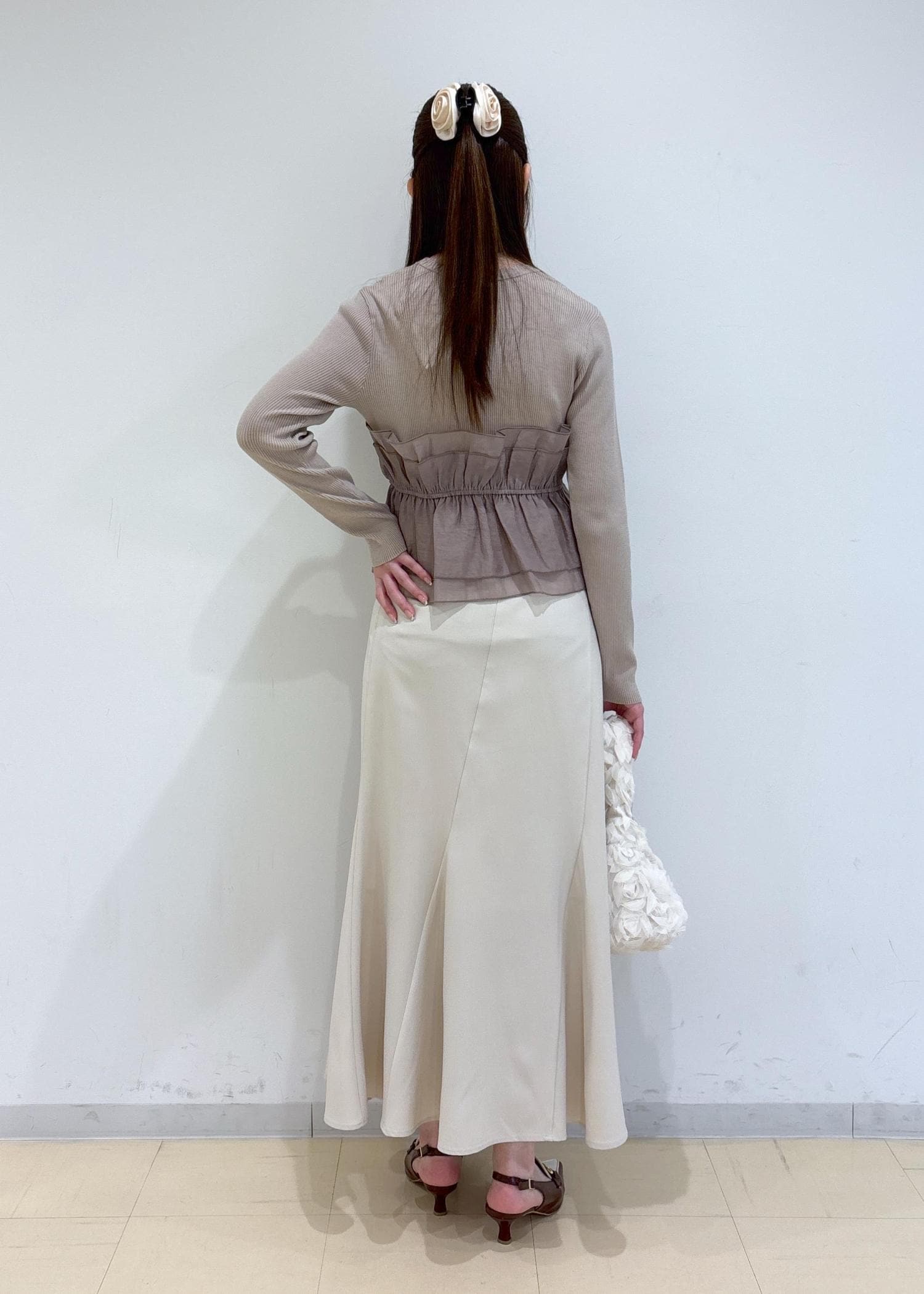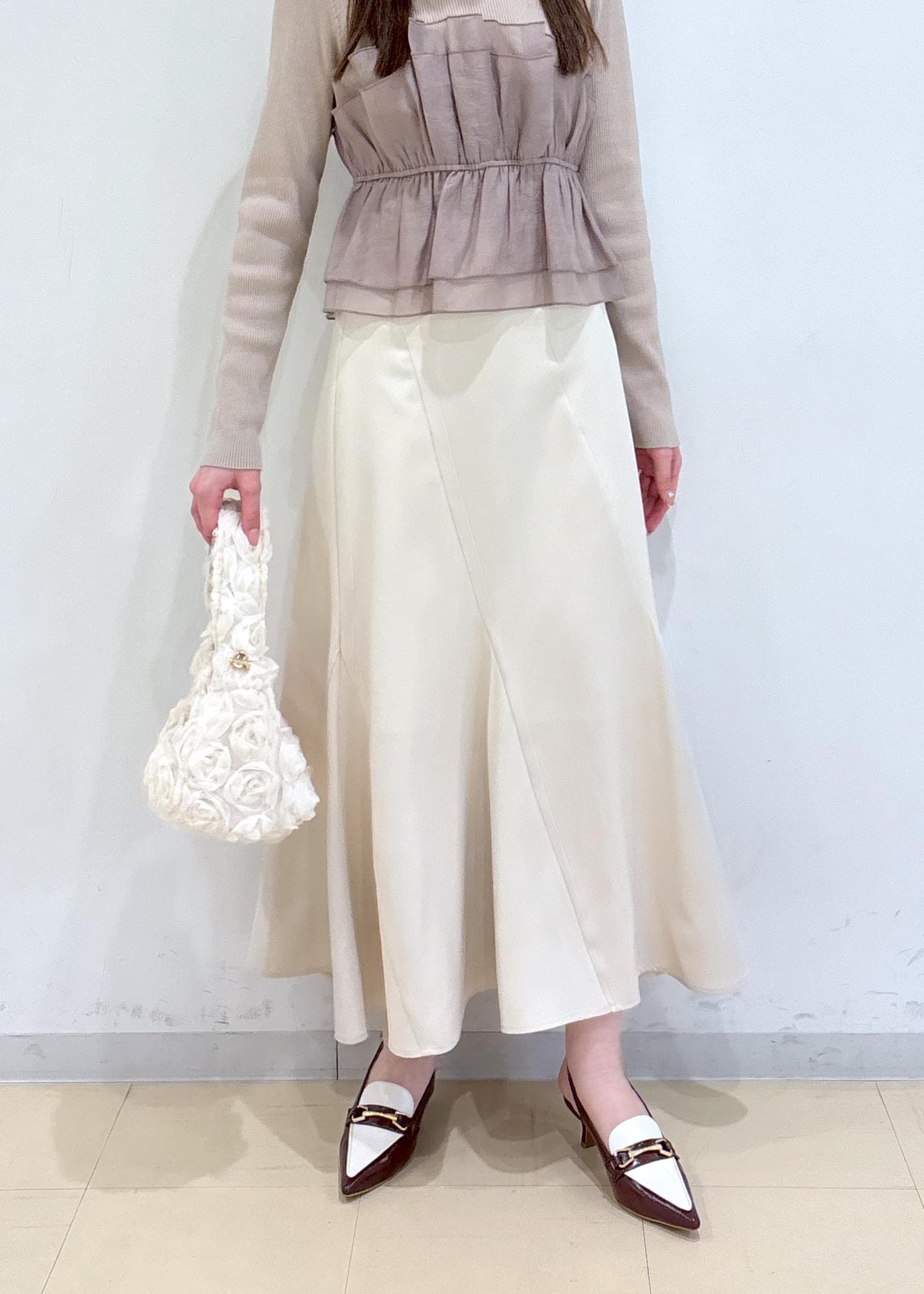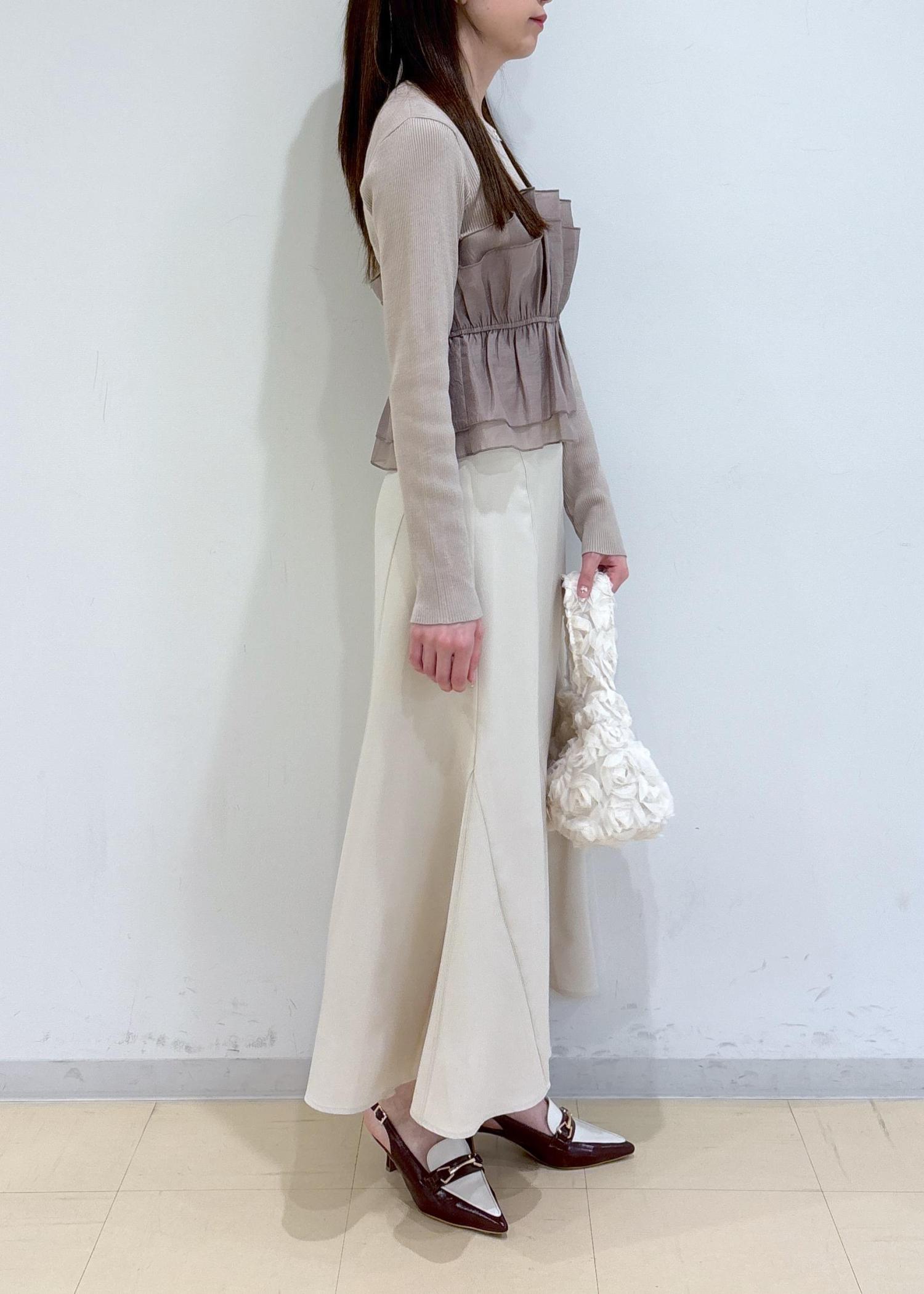 ふわっと動きの出るマーメイドシルエットのスカートと合わせて女性らしい印象にしました。