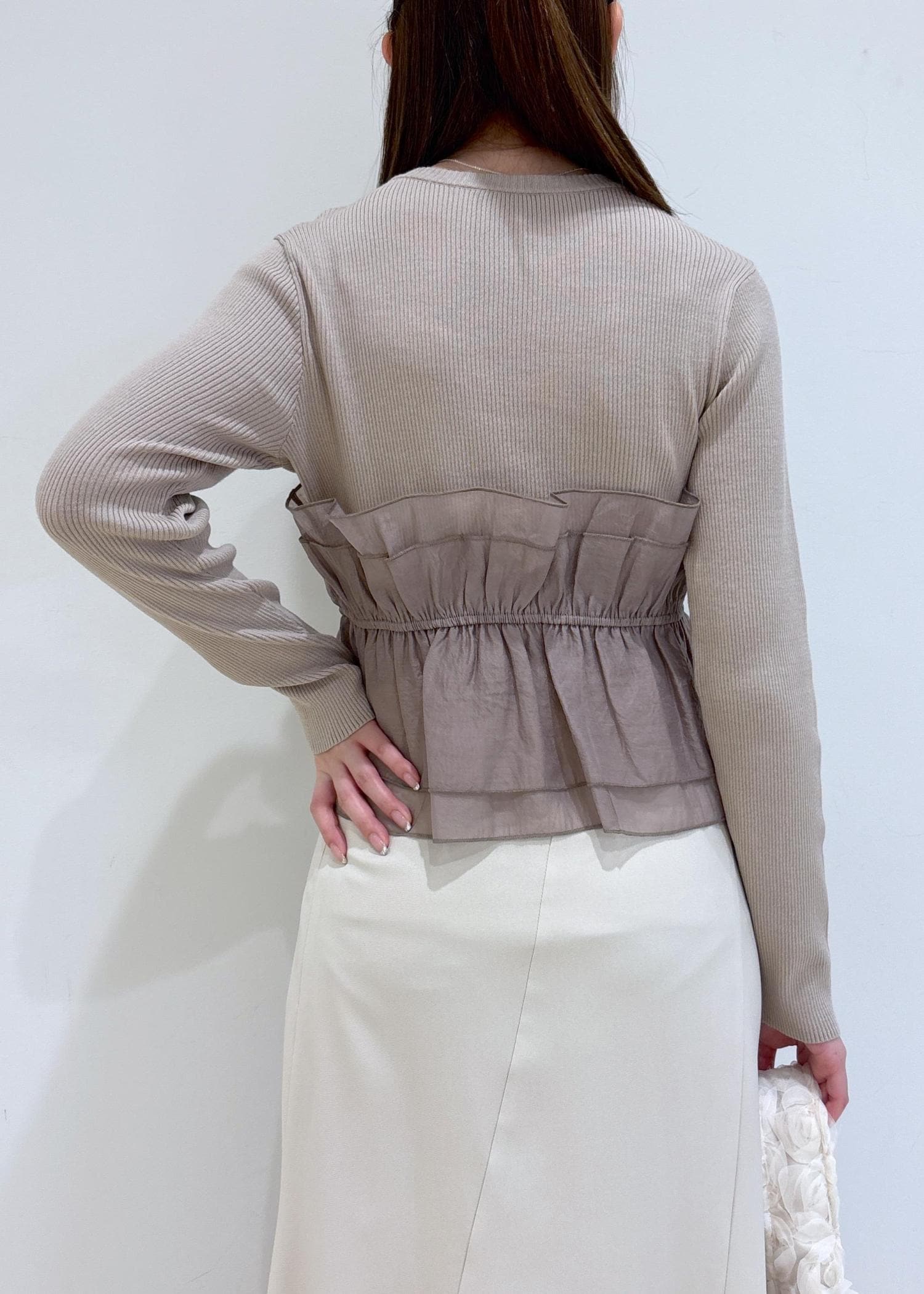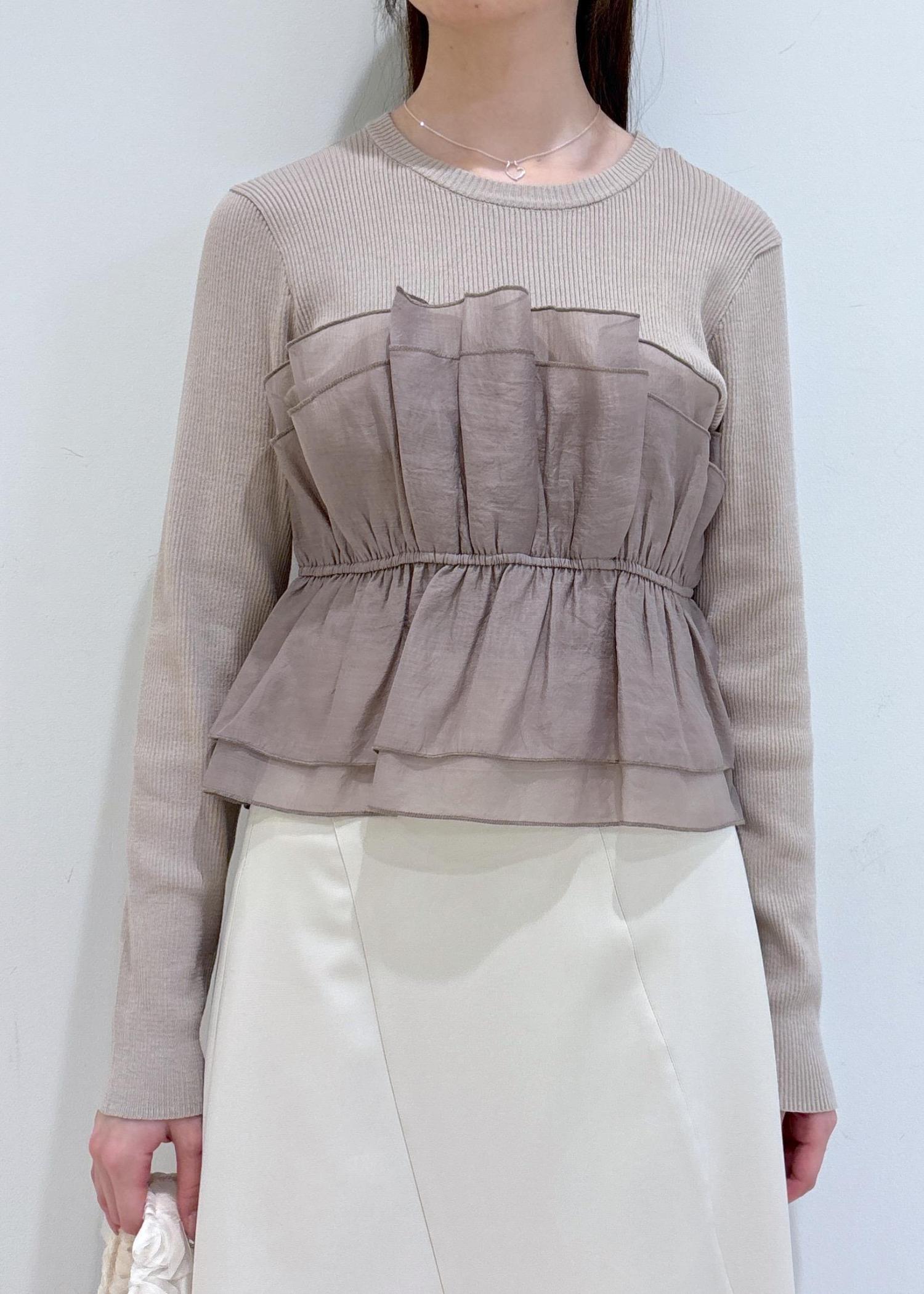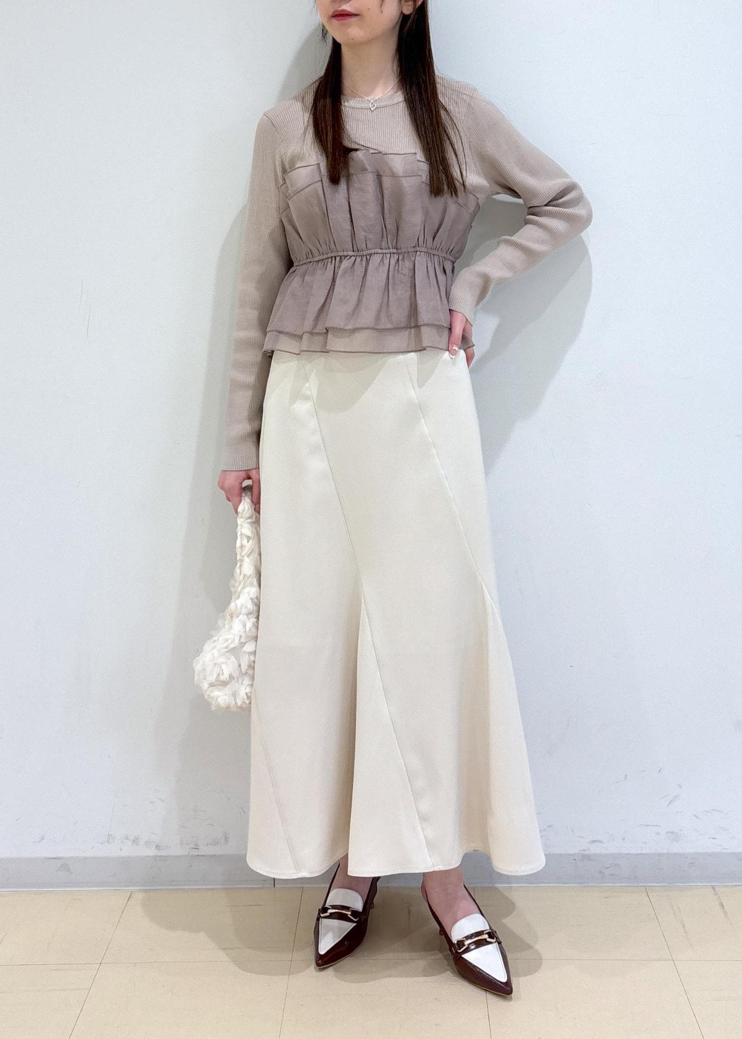 ふわっと動きの出るマーメイドシルエットのスカートと合わせて女性らしい印象にしました。