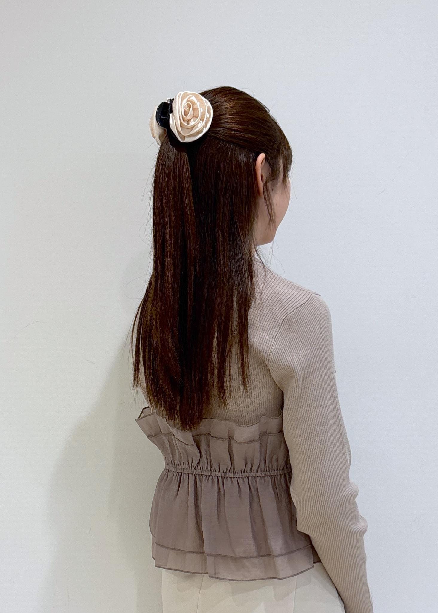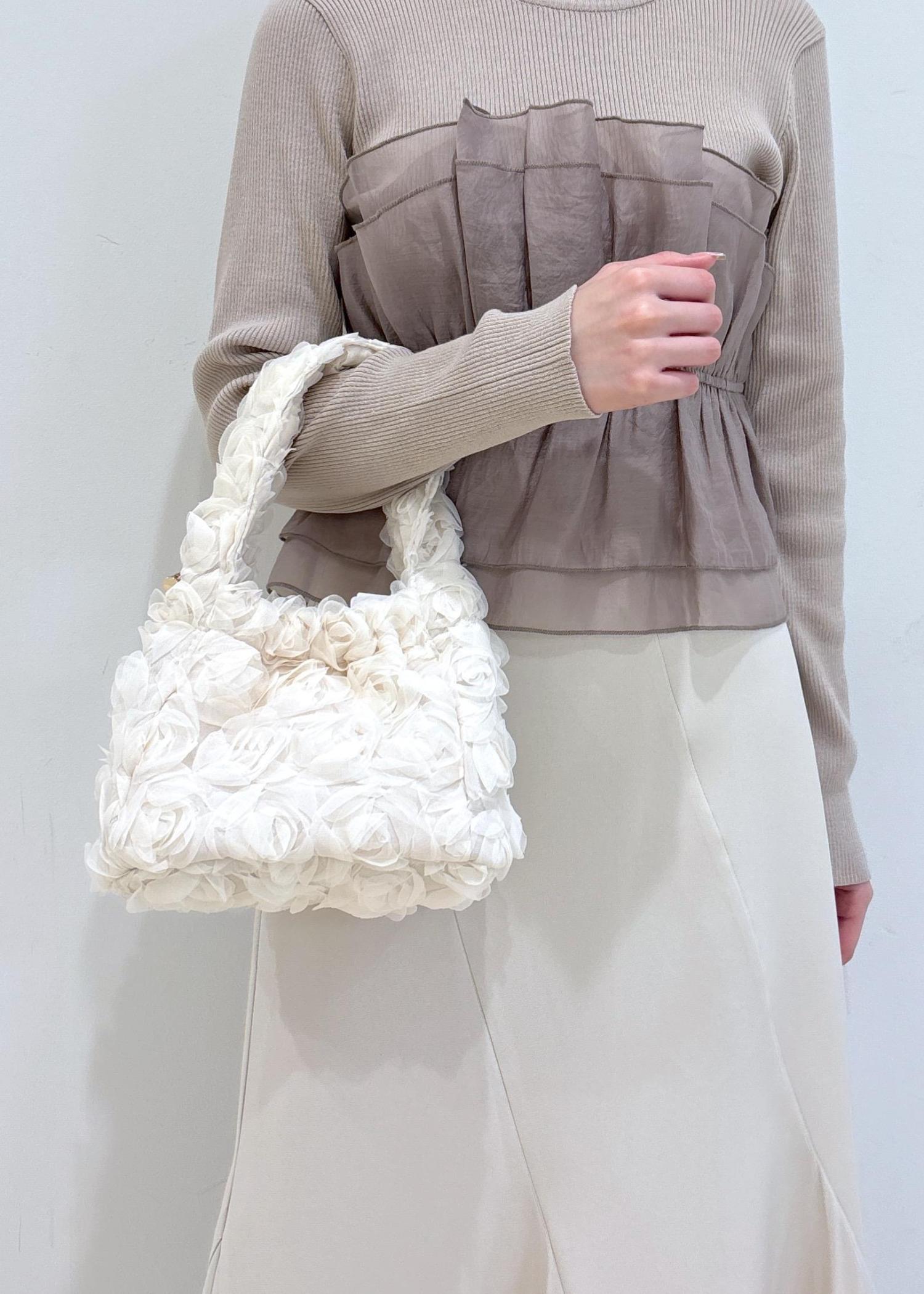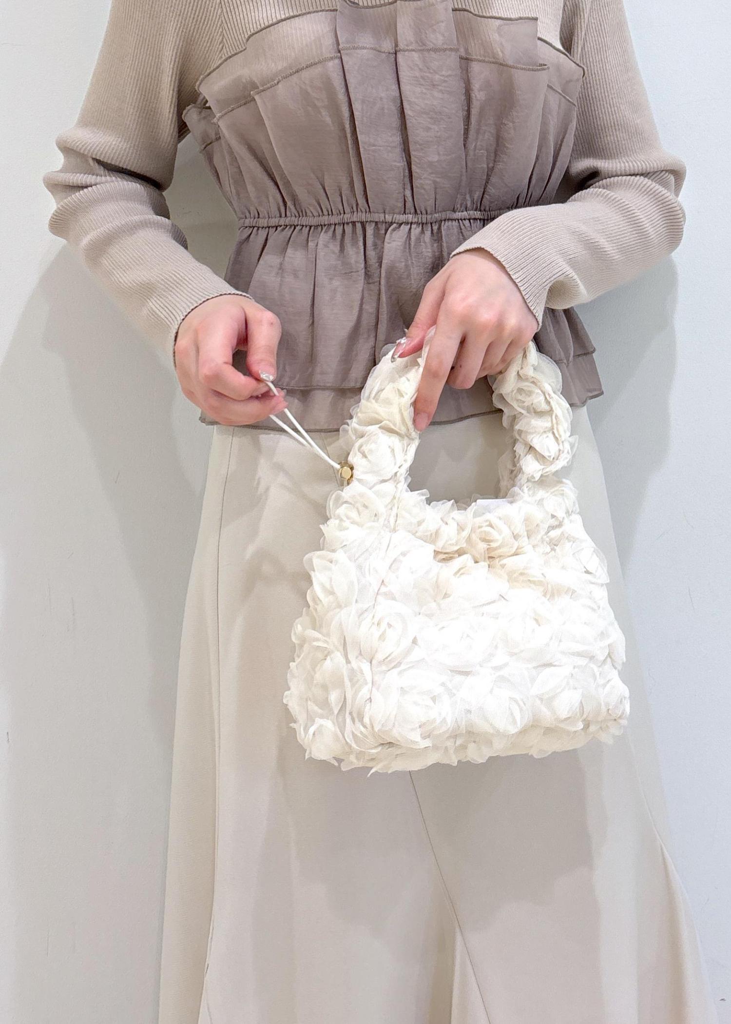 バラのバンスクリップとレース素材のバッグが可愛いポイントです。