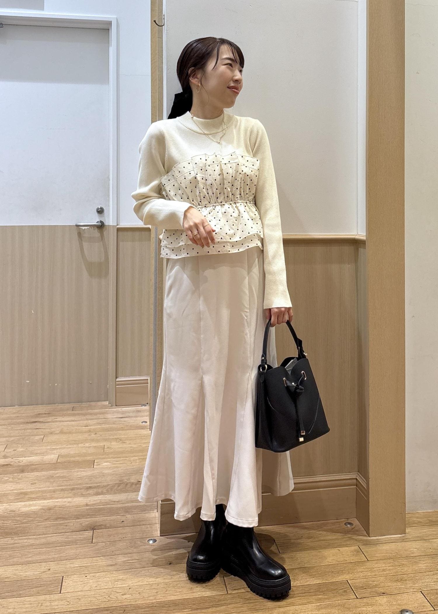 腰回りのラインは多少ひろいますが、その下からが布がしっかりあって上品なシルエットで歩きやすかったです! -