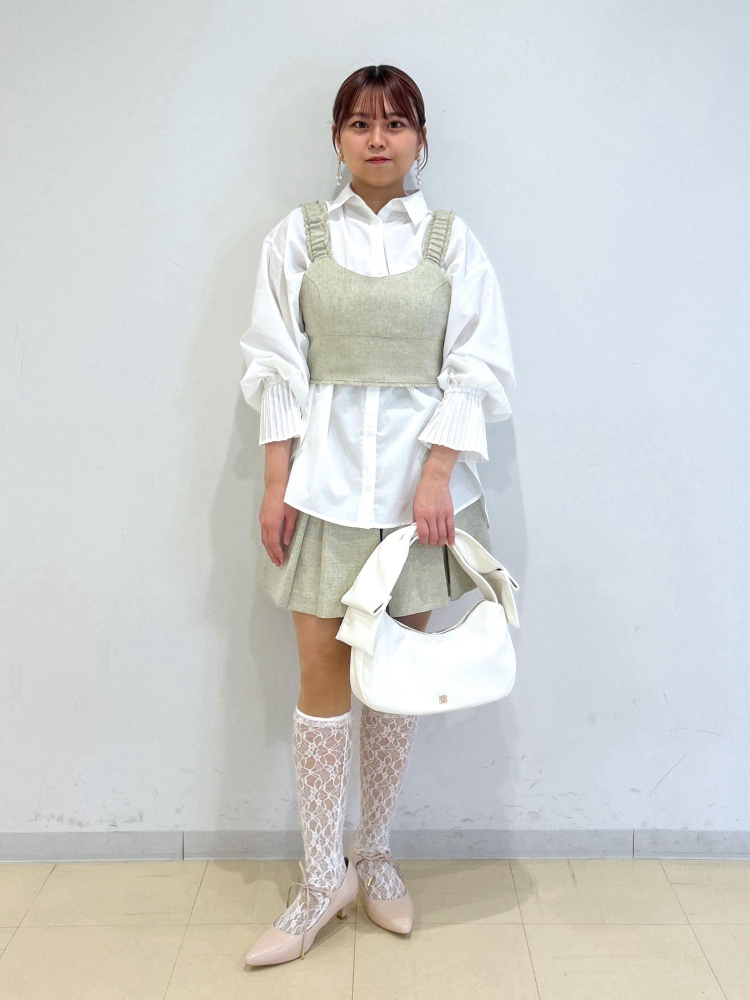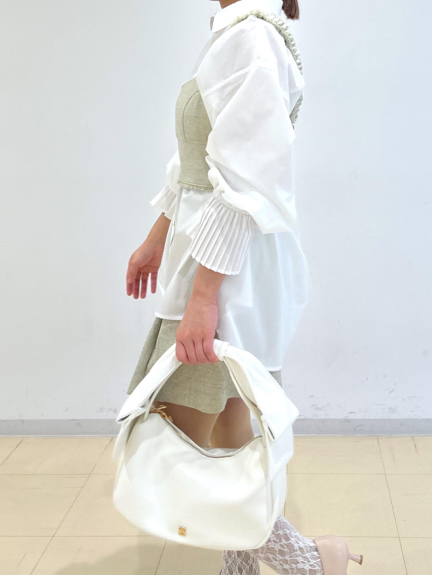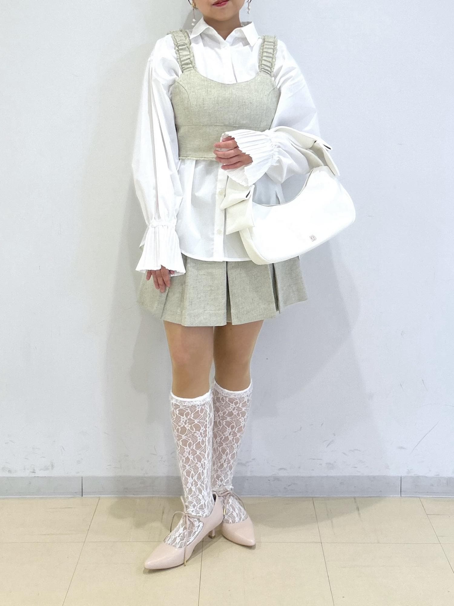 パンツとビスチェのセットアップをシャツに合わせて、少しキレイめのレイヤードコーデです♪